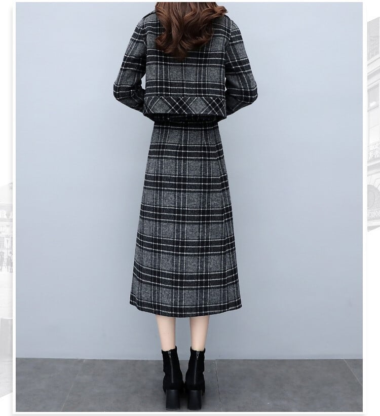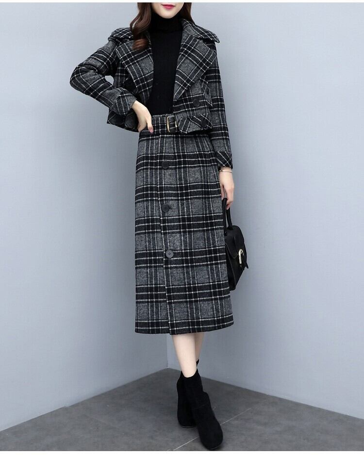 【送料無料】セットアップ 2点セット ツーピース チェック柄ジャケット ロングスカート 大人可愛い きれいめ 上品 おしゃれ お洒落 こなれ感 クール エレガント 主役級 存在感 レディース ショート ショート丈 長袖 襟付き 柄 秋 冬 発表会 演奏会 お呼ばれ 20代 30代 40代 女性用 ビジネス OL 通勤 デート お出かけ 女子会 S M L XL 2XL 3XL 着回し 普段使い 重ね着 韓国 韓国系 オルチャン ファッション コーデ スタイル 大きいサイズ 灰色 グレー db4052