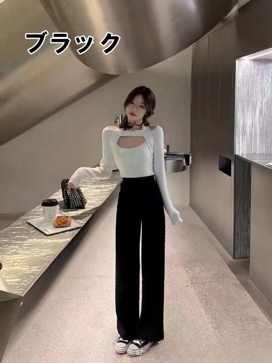 【送料無料】3色 ロング丈ニットパンツ ズボン ボトム カジュアル ちりめん風 ゆったりめ ハイウエスト クール レトロ スタイリッシュ スタイルアップ いい女 秋 冬 レディース ワンサイズ フリーサイズ ブラック ホワイト カーキ 灰色 黒 白 美脚 脚長 オシャレ デート 女子会 存在感 こなれ感 抜け感 普段使い デイリー使い 休日 主役級 お姉さん 大人カワイイ インスタ映え 韓国ファッション 海外トレンド 大人気 高見え 流行 人気 10代 20代 30代 40代 プチプラ db3981