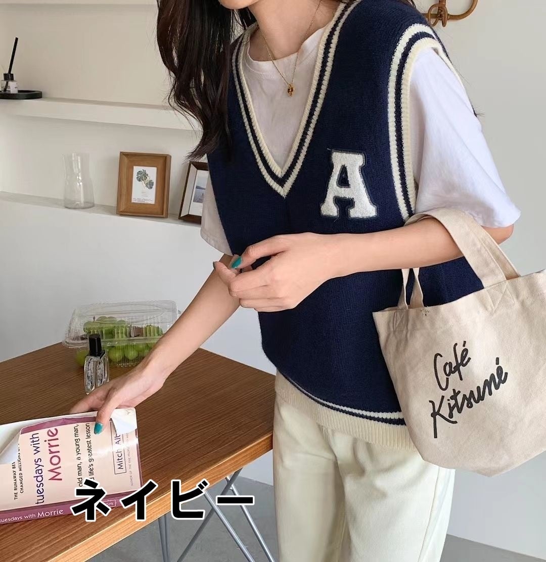 【送料無料】4色 ニットベスト ライン バイカラー ワッペン アルファベット レイヤード風 プルオーバー トップス かわいい 大人可愛い カジュアル おしゃれ お洒落 レトロ こなれ感 ラブリー キュート 個性的 主役級 存在感 抜け感 レディース 長袖 秋 冬 10代 20代 女の子 学生 通学 デート お出かけ 女子会 休日 着回し 普段使い 重ね着 韓国 韓国系 オルチャン ファッション コーデ スタイル モテ ワンサイズ フリーサイズ 黒 ブラック 茶色 ブラウン インスタ映え db3983