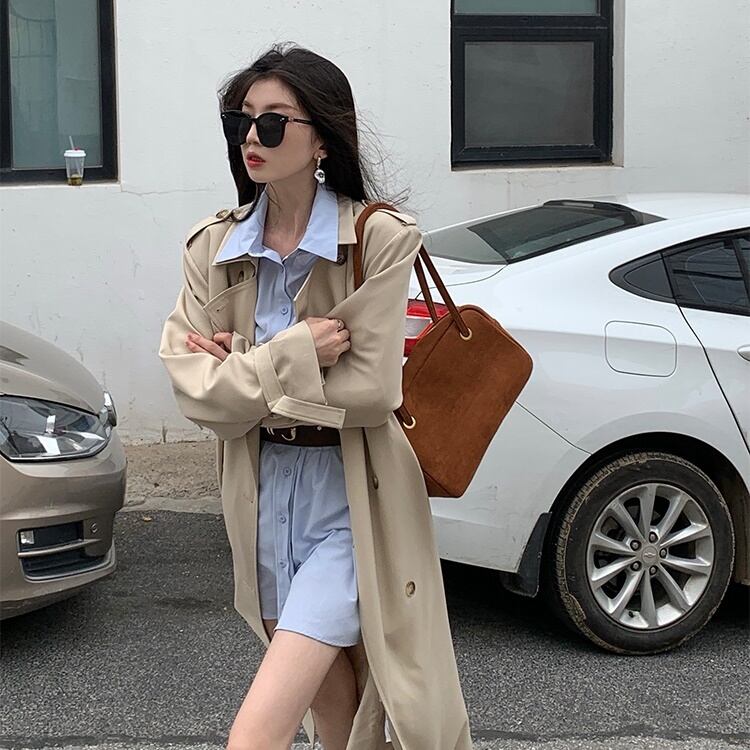 秋らしいカラーでレトロな雰囲気の定番トレンチコート。