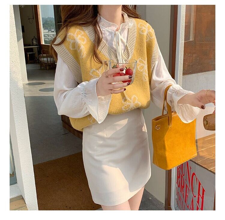 【送料無料】4色 ニットベスト セーター Vネック ノースリーブ トップス かわいい 大人可愛い きれいめ おしゃれ お洒落 キュート ラブリー ガーリー 個性的 主役級 存在感 レディース 花柄 フラワー 秋 冬 10代 20代 女性用 女の子 学生 通学 デート お出かけ 女子会 休日 着回し 普段使い 重ね着 韓国 韓国系 オルチャン ファッション コーデ スタイル インスタ映え トレンド 流行 プチプラ フリーサイズ ワンサイズ イエロー ホワイト ブラック ゆる db4066