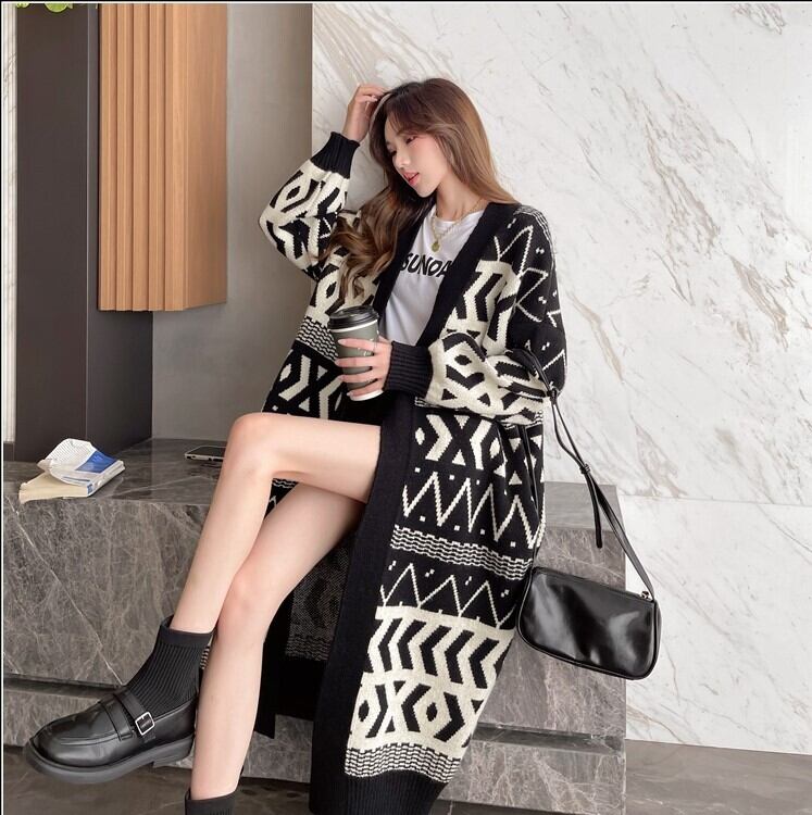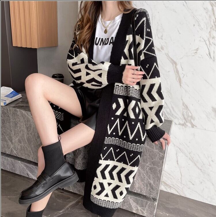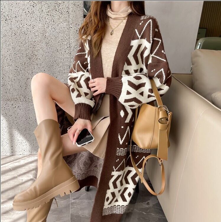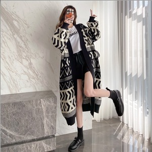 【送料無料】2色 ロングニット カーディガン セーター 羽織り コート 幾何学 トップス かわいい 大人可愛い きれいめ カジュアル シンプル おしゃれ お洒落 キュート 主役級 存在感 レディース 長袖 ロング ロング丈 柄 秋 冬 10代 20代 30代 女の子 学生 通学 デート お出かけ 女子会 休日 着回し 普段使い 重ね着 韓国 韓国系 オルチャン ファッション コーデ スタイル モテ トレンド 流行 インスタ映え ワンサイズ フリーサイズ ブラウン ブラック 黒 ゆったり db4072