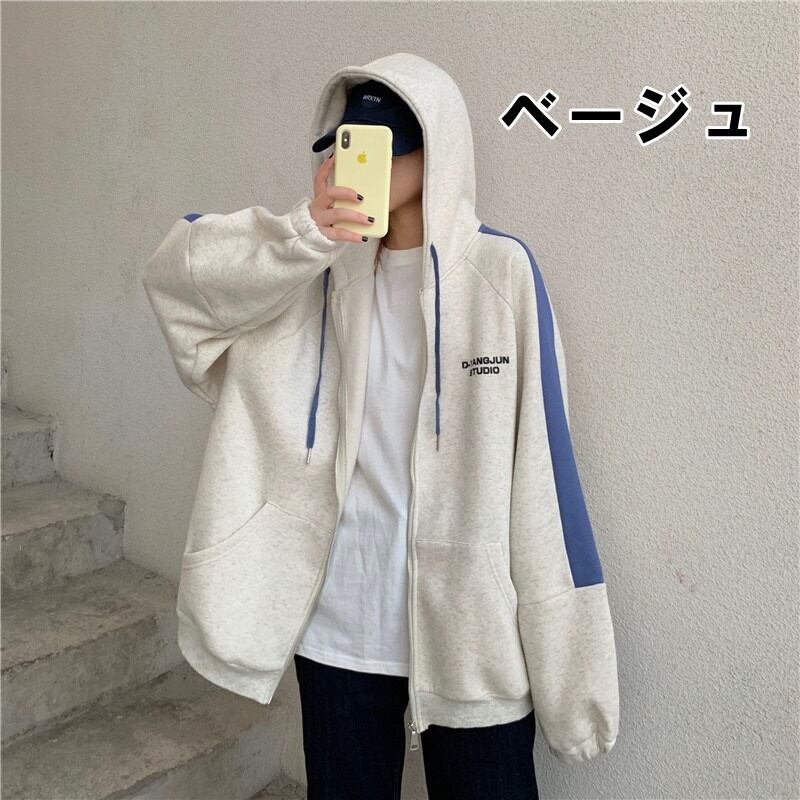 【送料無料】2色 長袖ジャケット ロング丈 ビックシルエット ジャンパー フード付き アウター バイカラー ライン ワンポイント 刺繍 ロゴ メンズライク クール カジュアル お姉さん 着回し 半袖 レディース ベージュ M L 大きいサイズ 羽織り 冬 ウインター 可愛い 大人可愛い スタイルアップ おしゃれ デート お出かけ 存在感 こなれ感 抜け感 女子会 普段使い 休日 主役級 インスタ映え 韓国ファッション 海外トレンド 大人気 高見え 10代 20代 30代 40代 プチプラ db4005