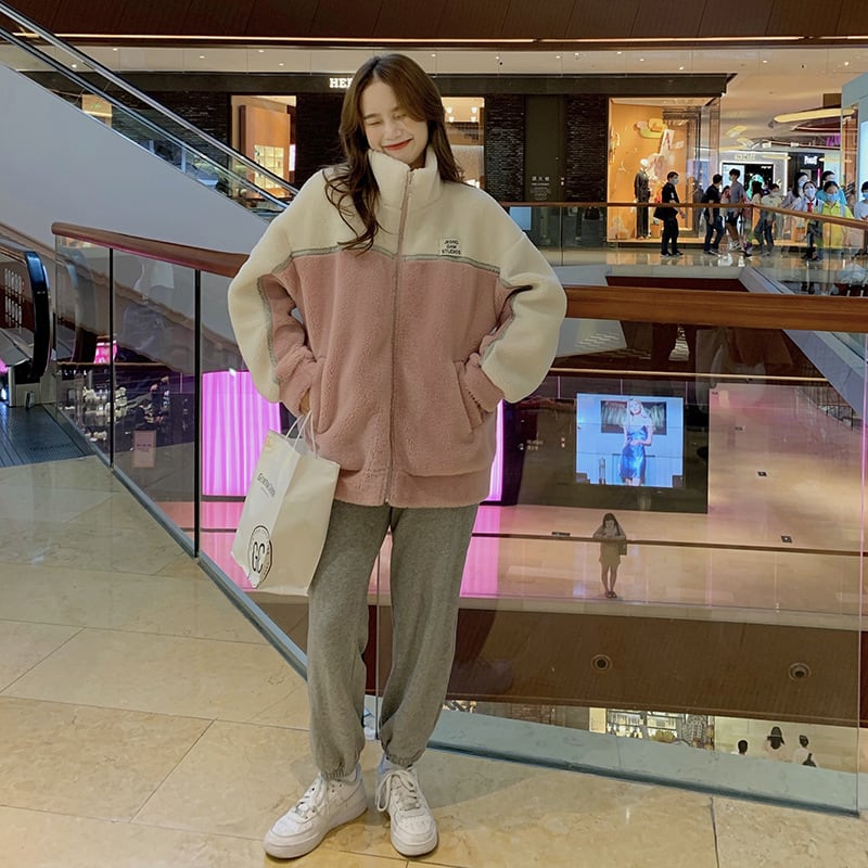 【送料無料】もこもこ ジャケット ボア コート ショート丈 バイカラー ハイネック ビックカラー 個性的 ミディアム丈 暖かい レディース アプリコット グレー ピンク カジュアル モコモコ アウター ブルゾン 秋 冬 長袖 大きいサイズ XL 2XL 3XL 4XL カワイイ セーター服 バイカラー ガーリー ラブリー 韓国 ファッション おしゃれ デート お出かけ 存在感 普段使い デイリー使い 休日 主役級 インスタ映え トレンド 10代 20代 30代 40代 プチプラ db4006