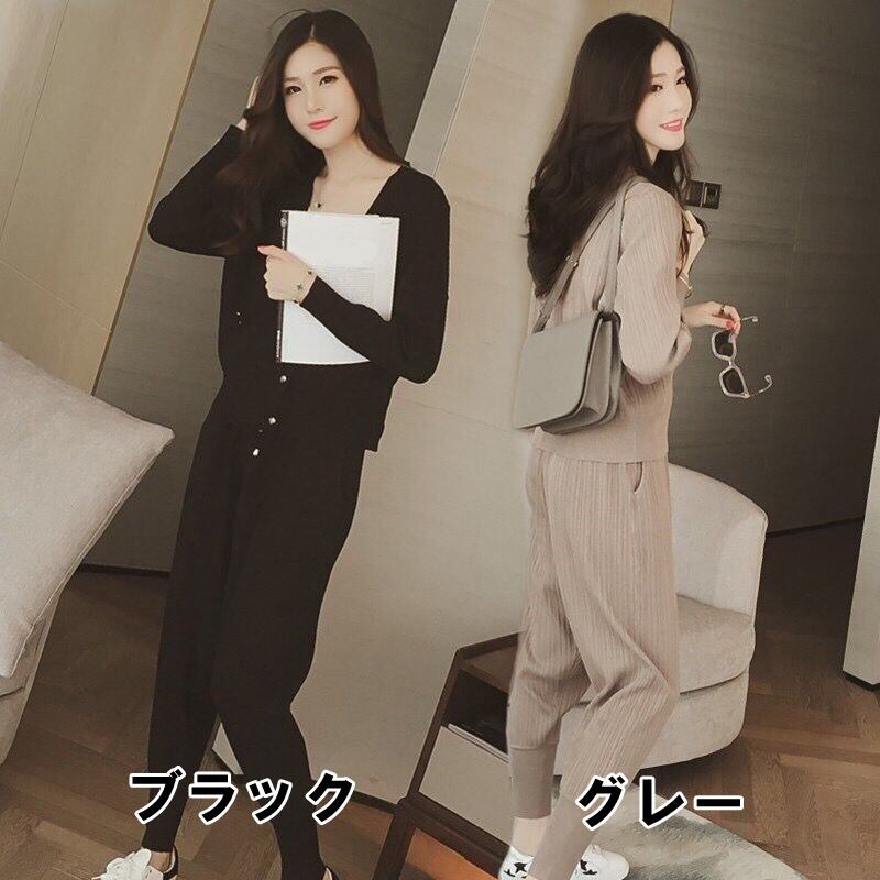 【送料無料】セットアップ 長袖 ジャケット ニット カーディガン ショート丈 ロングパンツ ジャージ ゆったり ショート丈 スタイルアップ 楽ちん 大人 お姉さん レディース 華やか 大人可愛い 春 夏 S M L XL 2XL 3XL 4XL 脚長 美脚 着痩せ 可愛い デート 女子会 普段使い デイリー使い 休日 お出かけ 存在感 主役級 こなれ感 インスタ映え 韓国ファッション 海外トレンド 大人気 高見え 流行 プチプラ ブラック 10代 20代 30代 db4008
