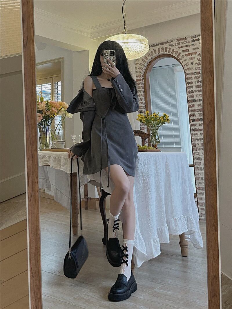 【送料無料】セットアップ ジャケット ミニワンピース スーツ ドロスト クロップ丈 キャミソールワンピース 上下セット グレー セクシー カッコイイ 長袖 上着 アウター キャミソールワンピ ショート丈 大人可愛い おしゃれ こなれ感 きれいめ S M L XL 大きいサイズ 春 夏 秋 冬 10代 20代 可愛い 大人女子 お揃い 韓国 ファッション トレンド 主役級 お出かけ 二次会 パーティー ドレス お呼ばれ イベント 衣装 存在感 クラブ ギャル レトロ かわいい db4021