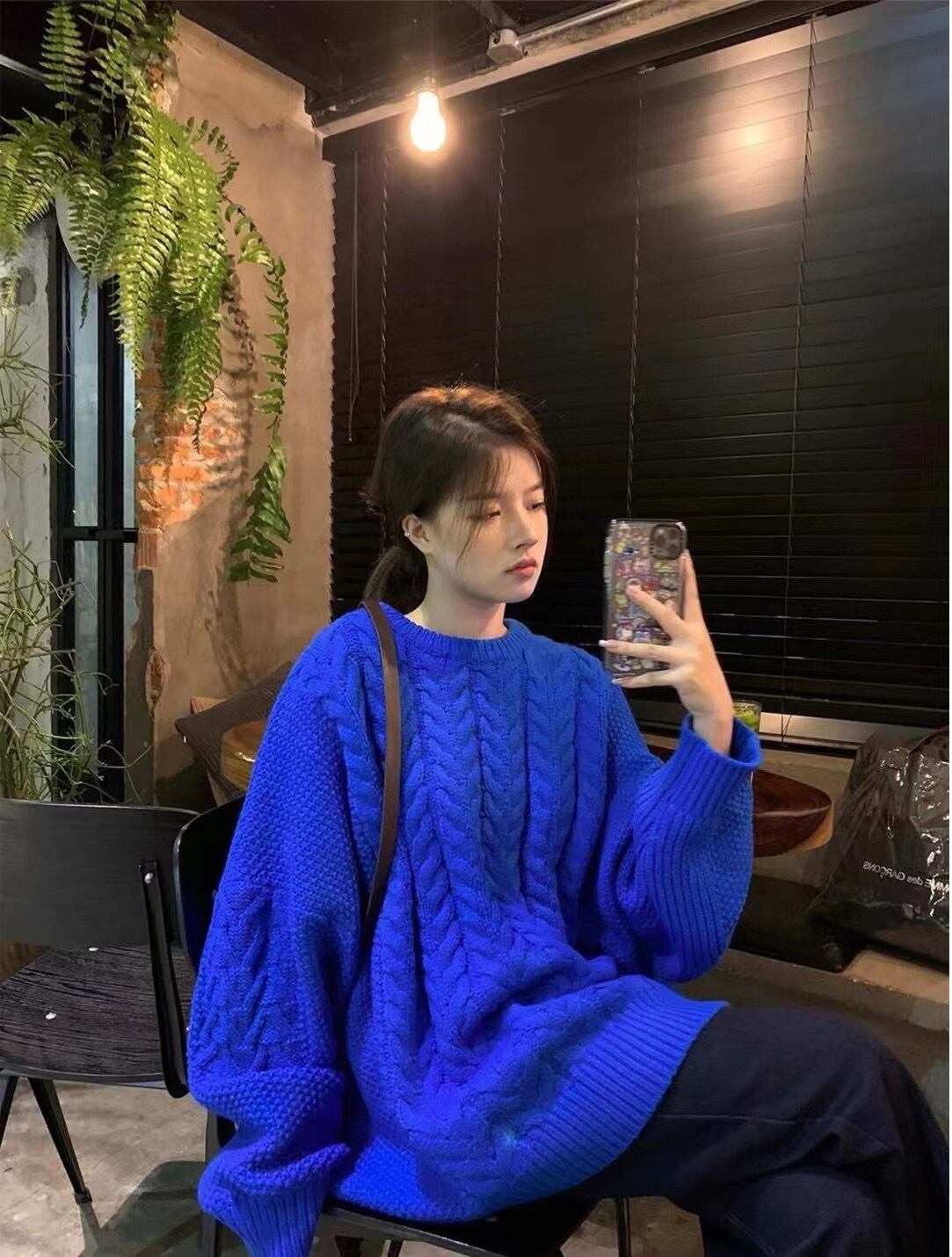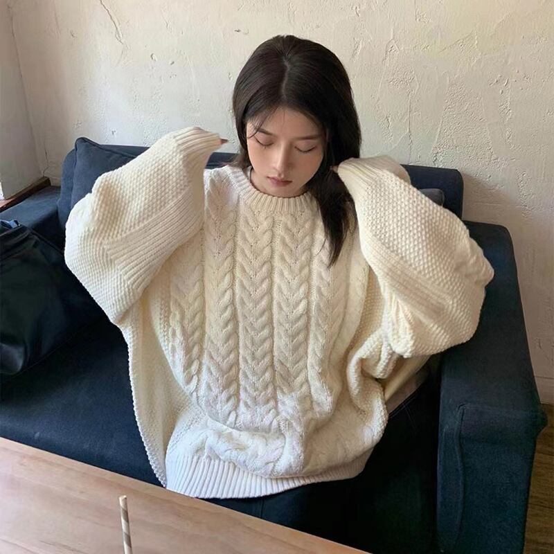 【送料無料】3色 長袖ニット セーター プルオーバー トップス ケーブル編み クルーネック ゆったり オーバーサイズ 長袖 かわいい 大人可愛い きれいめ おしゃれ お洒落 カジュアル シンプル 主役級 存在感 レディース 秋 冬 10代 20代 30代 女性用 学生 通学 デート お出かけ 女子会 休日 着回し 普段使い 重ね着 韓国 韓国系 オルチャン ファッション コーデ スタイル インスタ映え トレンド 流行 モテ ワンサイズ フリーサイズ ブルー ホワイト ブラウン 白 茶色 青 db4080