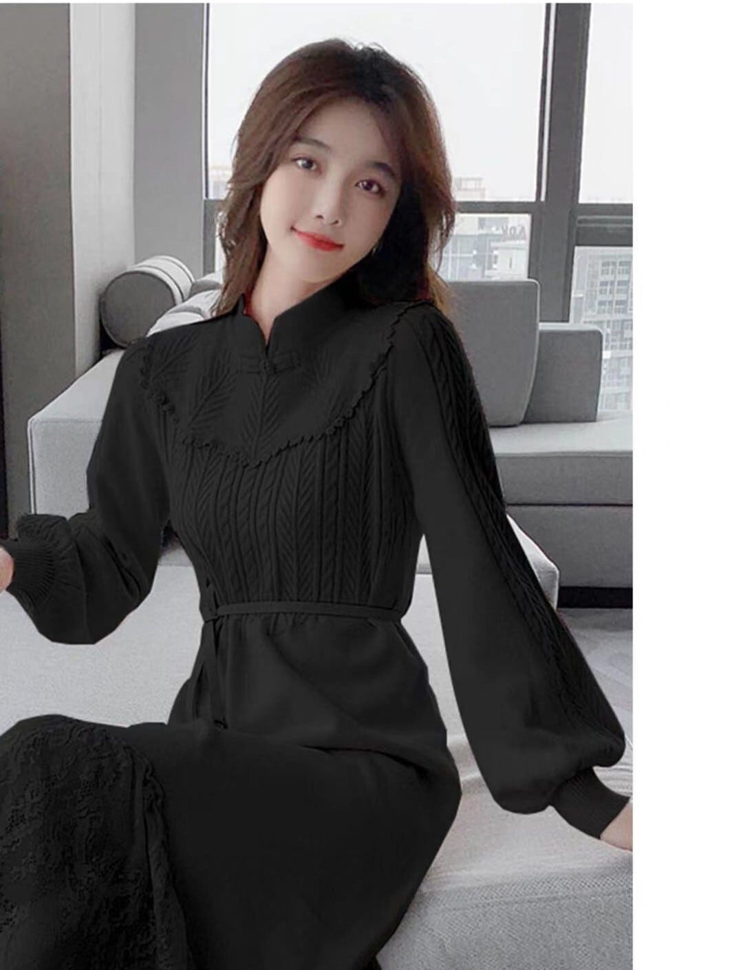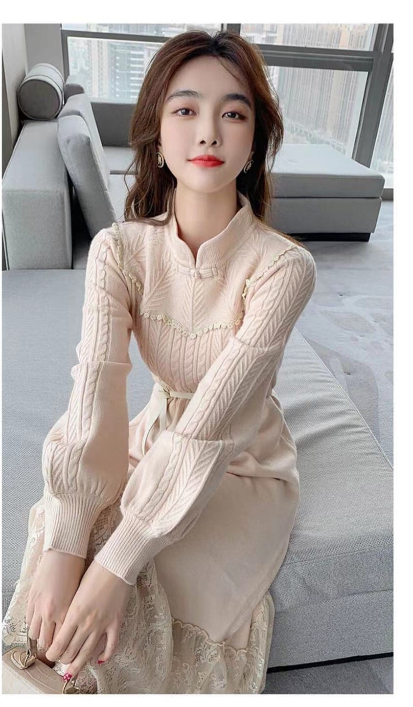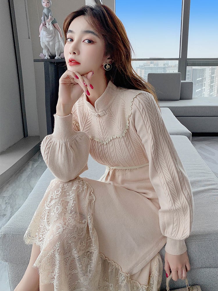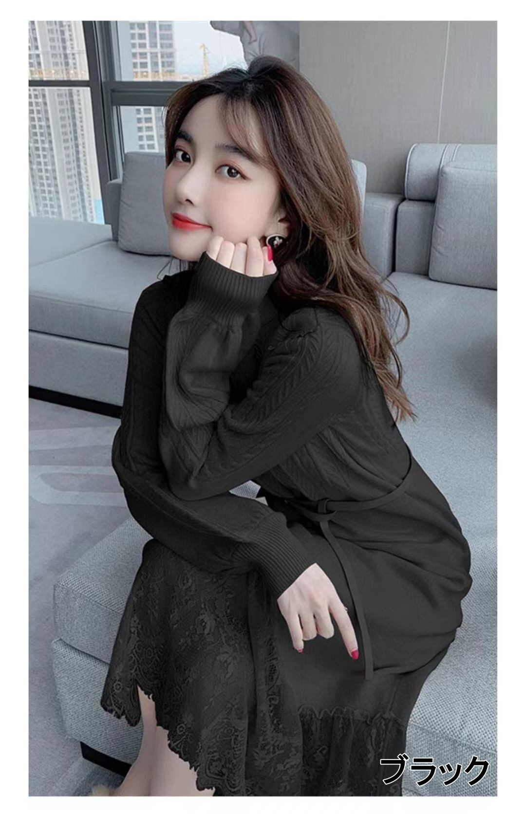 【送料無料】3色 ニットワンピース ドレス ロングワンピース レースワンピース ハイネック ハイウエスト Aライン かわいい 大人可愛い きれいめ 上品 おしゃれ お洒落 こなれ感 ラブリー キュート ガーリー エレガント 主役級 存在感 フェミニン レディース 10代 20代 女性用 女の子 学生 通学 デート お出かけ 女子会 着回し 普段使い 韓国 韓国系 オルチャン ファッション コーデ スタイル モテ インスタ映え お呼ばれ 流行 トレンド S M L XL 白 黒 アプリコット db4091