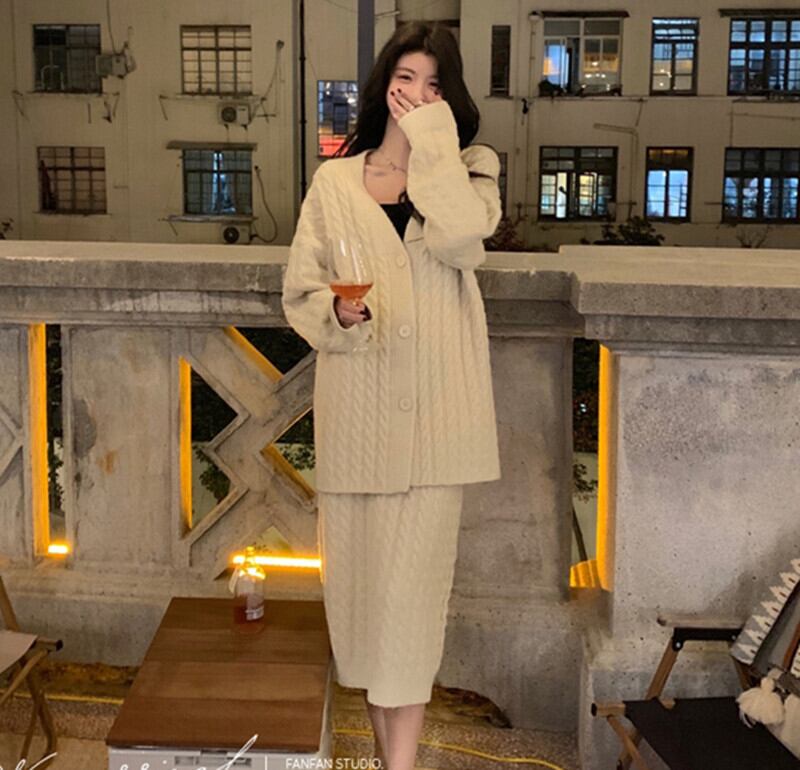 【送料無料】3色 セットアップ 2点セット 長袖ニット カーディガン ロングスカート 長袖 大人可愛い カジュアル シンプル 大人 上品 おしゃれ お洒落 こなれ感 エレガント 主役級 存在感 とろみ感 抜け感 レディース 無地 秋 冬 20代 30代 40代 デート 女子会 休日 着回し 普段使い 韓国 韓国系 オルチャン ファッション コーデ スタイル モテ トレンド 流行 インスタ映え フリーサイズ ゆったり ゆる ワンサイズ グレー ベージュ ピンク db4085