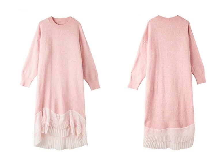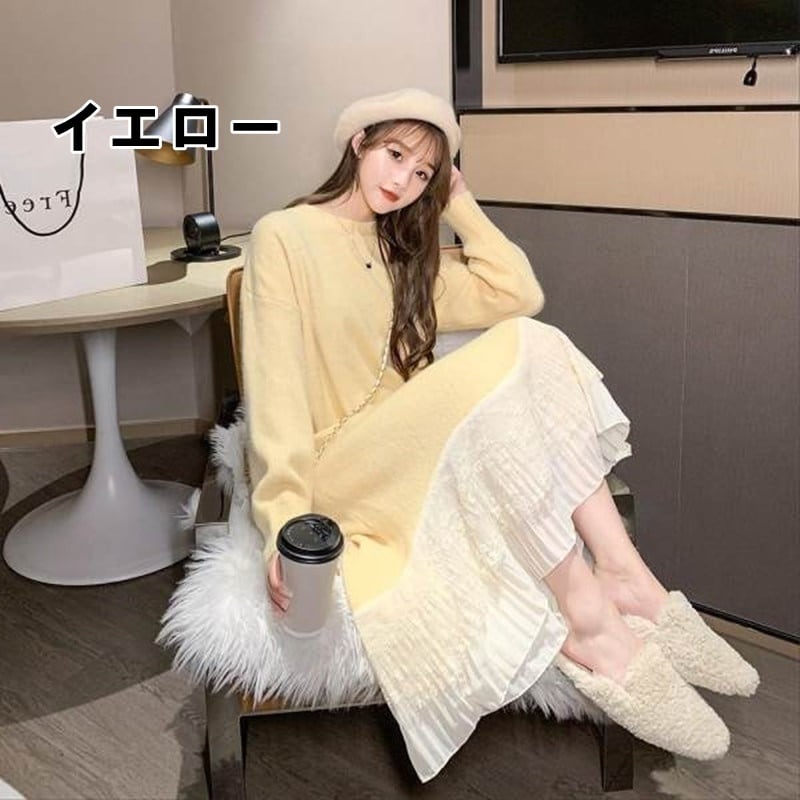 【送料無料】3色 ニットワンピース リブ ラウンドネック ミモレ丈 Aライン 長袖 シフォン 切り替え プリーツ フリル 切り替え 大人可愛い カジュアル シンプル かわいい おしゃれ お洒落 こなれ感 エレガント フェミニン 主役級 存在感 レディース スタイルアップ 冬 秋 10代 20代 30代 デート 女子会 休日 着回し 普段使い 韓国 韓国系 ファッション コーデ スタイル モテ トレンド インスタ映え ワンサイズ ガーリー コーデ ホワイト ブラック アプリコット スリム db4115