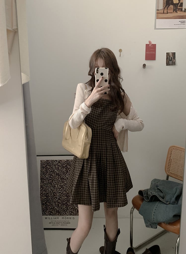 【送料無料】セットアップ 制服風 ツーピース ジャケット ミニワンピース チェック ハイウエスト スーツ キャミソールワンピース 上下セット ブラウン セクシー カッコイイ 長袖 上着 アウター キャミワンピ ショート丈 大人可愛い おしゃれ こなれ感 きれいめ S M L XL 大きいサイズ 春 夏 秋 冬 10代 20代 可愛い 大人女子 お揃い 韓国 ファッション トレンド 主役級 お出かけ 二次会 パーティー ドレス お呼ばれ イベント 衣装 存在感 クラブ ギャル レトロ かわいい db4122
