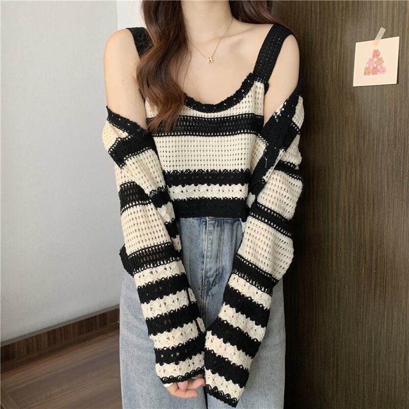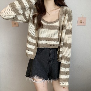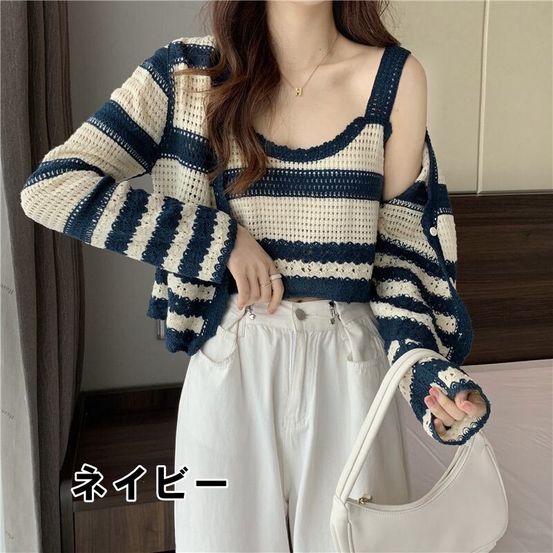 【送料無料】3色 ニット セットアップ キャミソール&カーディガン ケーブル ボーダー クロシェ 透かし編み トップス トップス 無地 長袖 個性的 長袖 肌見せ 肩見せ かわいい 大人可愛い きれいめ カジュアル おしゃれ お洒落 こなれ感 ラフ 主役級 存在感 無地 春 秋 10代 20代 30代 レディース 女の子 学生 通学 デート お出かけ 女子会 休日 着回し 普段使い 韓国 韓国系 オルチャン コーデ スタイル プチプラ ホワイト 白 ブラック ブルー ピンク イエロー db4138