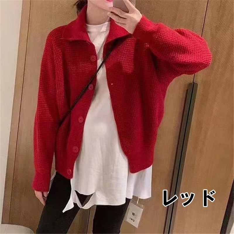 【送料無料】7色 カーディガン トップス レディース ニット ワッフル アウター セーター リブ ラウンドネック 長袖 かわいい レトロ カジュアル おしゃれ ドロップショルダー ボリューム袖 ケーブルニット 編み込み 着回し シンプル ラフ 10代 20代 30代 春 冬 秋 女性らしい ファッション オリーブ ピンク ベージュ ブラック レッド ブルー キャメル 重ね着 韓国 ファッション 大人可愛い コーデ db4149