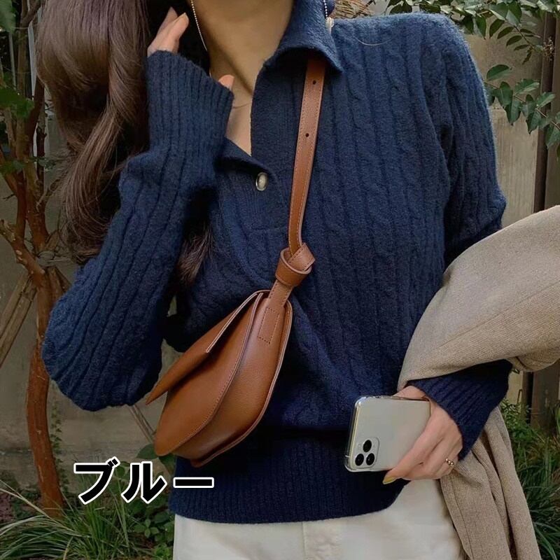 【送料無料】5色 ニット セーター トップス 長袖 ショート丈 長袖 襟付き ポロ襟 ケーブル編み 個性的 かわいい 大人可愛い きれいめ おしゃれ お洒落 カジュアル ストリート メンズライク 主役級 存在感 レディース ロゴ 秋 冬 10代 20代 女性用 女の子 学生 通学 デート お出かけ 女子会 休日 スポーツ 着回し 普段使い 重ね着 韓国 韓国系 オルチャン ファッション コーデ スタイル インスタ映え トレンド 流行 フリーサイズ ワンサイズ ホワイト 白 黒 ブルー db4152