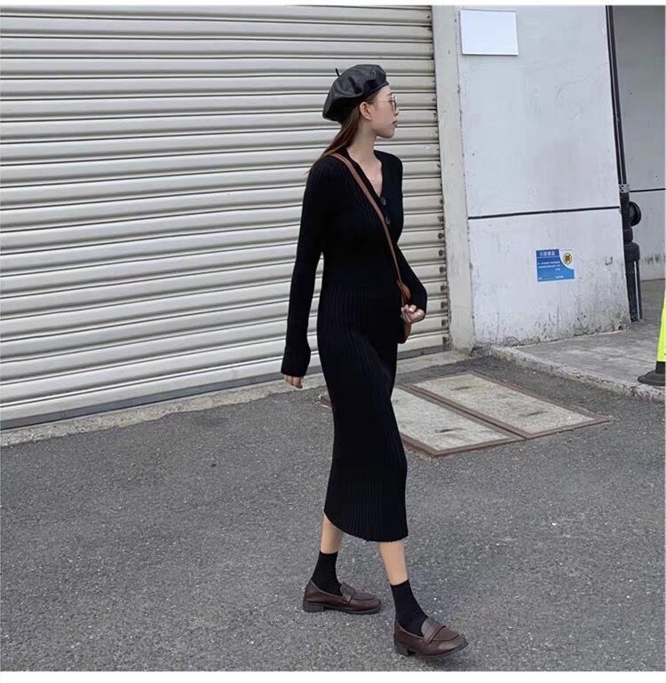 【送料無料】2色 ニットワンピース ロングワンピース リブ Vネック 長袖 スリム タイト 細身 かわいい 大人可愛い きれいめ カジュアル おしゃれ お洒落 大人女子 こなれ感 ラブリー キュート ガーリー エレガント 主役級 存在感 フェミニン レディース 甘め ハイウエスト 無地 秋 冬 10代 20代 30代 OL 学生 通学 デート お出かけ 女子会 休日 着回し 韓国 韓国系 オルチャン ファッション コーデ スタイル モテ トレンド 流行 S M L XL グリーン ブラック db4175