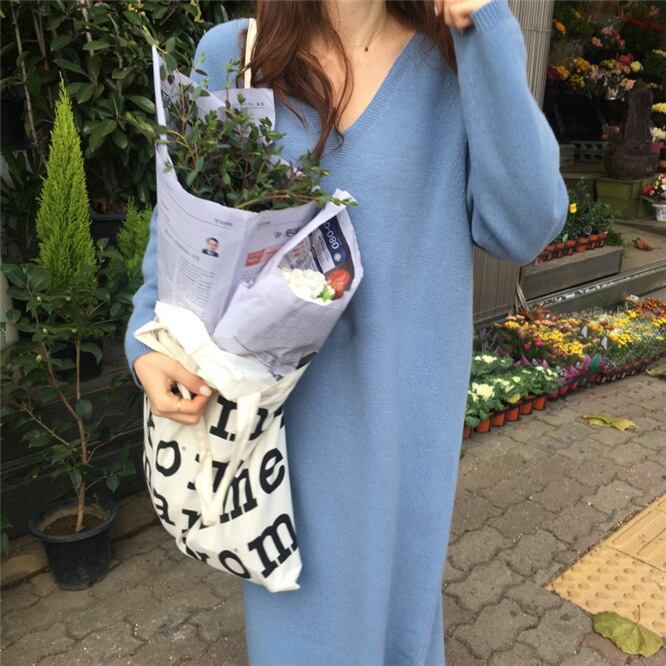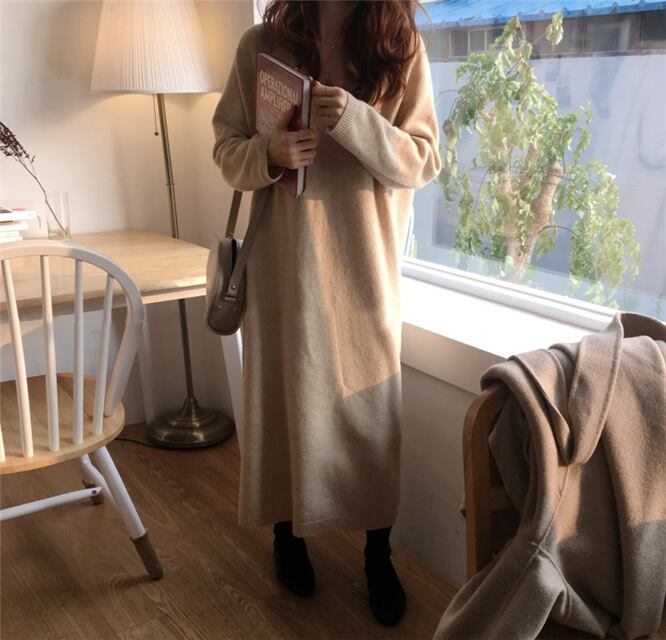 【送料無料】3色 ニットワンピース ロングワンピース Vネック 長袖 ルーズ ゆったり ゆる かわいい 大人可愛い きれいめ カジュアル おしゃれ お洒落 大人女子 こなれ感 ラブリー キュート ガーリー エレガント 主役級 存在感 フェミニン レディース 甘め 無地 秋 冬 10代 20代 30代 OL 学生 通学 デート お出かけ 女子会 休日 着回し 韓国 韓国系 オルチャン ファッション コーデ モテ トレンド 流行 体型カバー ワンサイズ ブルー アプリコット ブラウン db4178