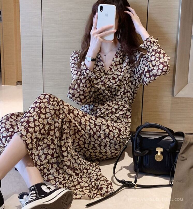 【送料無料】花柄ワンピース ロングワンピース シフォンワンピ Vネック カシュクールデザイン かわいい 大人可愛い きれいめ 大人 上品 おしゃれ お洒落 こなれ感 ラブリー キュート エレガント 主役級 存在感 抜け感 フェミニン レディース 花柄 フラワー 春 秋 発表会 演奏会 お呼ばれ 学生 通学 デート お出かけ 女子会 着回し 普段使い 韓国 韓国系 オルチャン ファッション コーデ スタイル モテ トレンド 流行 インスタ映え M L XL 2XL ハイウエスト db4186