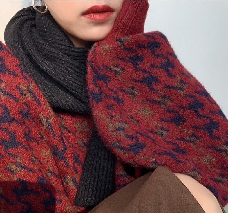 【送料無料】2色 長袖ニット セーター プルオーバー 千鳥柄チェック 厚手 かわいい 大人可愛い シンプル カジュアル 大人 おしゃれ お洒落 かっこいい こなれ感 ルーズ レトロ 主役級 存在感 キュート レディース ママ 秋 冬 10代 20代 30代 40代 学生 通学 デート お出かけ 女子会 休日 着回し 普段使い 韓国 韓国系 オルチャン ファッション コーデ スタイル モテ 体系カバー 流行 インスタ映え ワンサイズ フリーサイズ レッド 赤 グリーン 緑 db4209