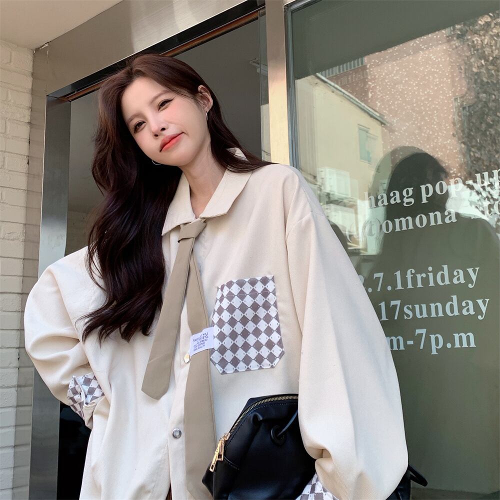 【送料無料】2色 シャツ ブラウス レディース 長袖 スエード ネクタイ トップス アプリコット コーヒー 無地 襟付き シンプル クール かっこいい かわいい おしゃれ 大人女子 こなれ感 お洒落 大人可愛い ガーリー 個性的 存在感 10代 20代 学生 休日 お出かけ デート 女子会 韓国 原宿 ファッション コーデ お揃い 双子 インスタ映え 人気 トレンド 抜け感 レトロ 主役級 オシャレ ルーズ デザイン 可愛い 存在感 スクールガール db4324