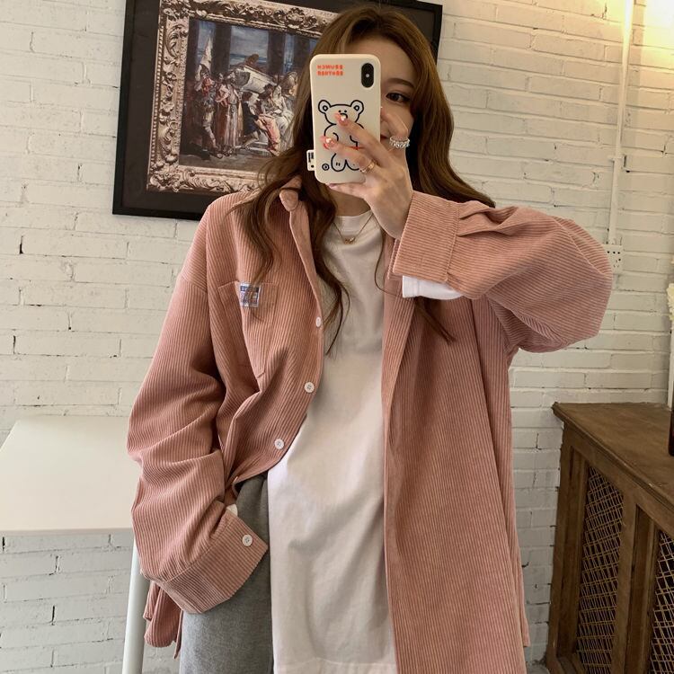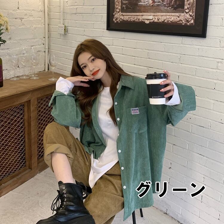 【送料無料】3色 コーデュロイ シャツ アウター トップス レディース 春 秋 ホワイト グリーン ピンク 長袖 襟付き シンプル かわいい カジュアル 大人可愛い おしゃれ 大人女子 レトロ こなれ感 ラフ 抜け感 ワンサイズ フリーサイズ 無地 10代 20代 30代 学生 OL ママ 普段使い 休日 お出かけ 公園デビュー デート 女子会 着回し 韓国系 ファッション モテ コーデ スタイル インスタ映え 人気 トレンド 流行 db4325
