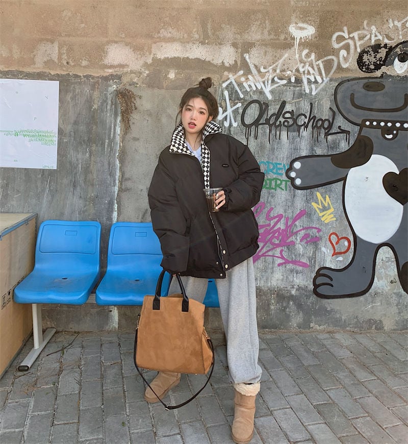 【送料無料】4色 ダウン もこもこアウター 中綿コート ハイネック ワッペン 格子柄 ダイヤ 裏地 切り替え スタンドカラー 大人可愛い カジュアル ホワイト 白 ブラック 黒 上着 ロングダウン ポケット ボタン ジッパー ジップ カジュアル シンプル 大人カジュアル モコモコ かわいい M L XL 無地 10代 20代 30代 40代 50代 OL 学生 ママ 普段使い 通勤 通学 お出かけ 旅行 韓国 ファッション 防寒 コーデ 暖かい あったか スタイル 人気 db4343