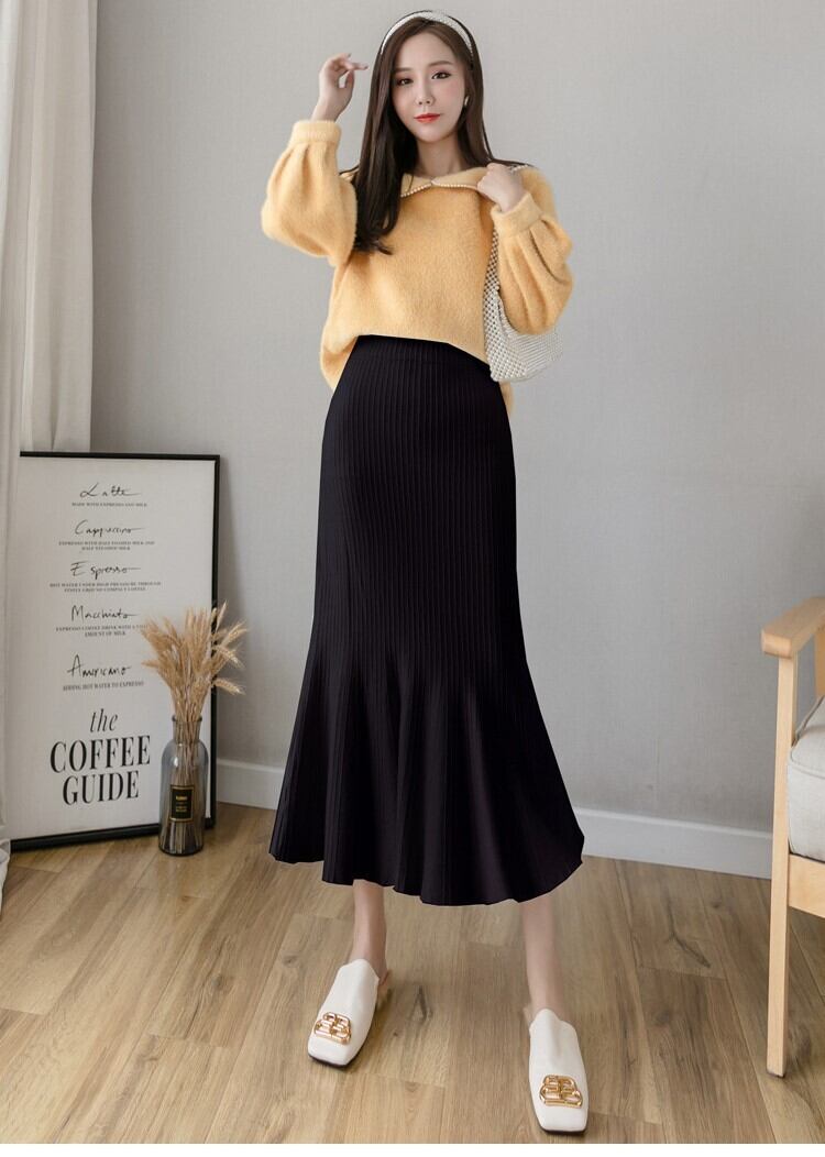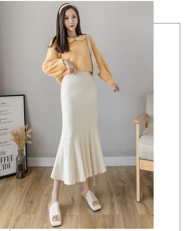 【送料無料】4色 ニットスカート マーメイド タイト 膝下 スリム 細身 ハイウエスト かわいい 大人可愛い きれいめ 大人 カジュアル おしゃれ お洒落 かっこいい 大人女子 こなれ感 ラブリー キュート エレガント 主役級 存在感 レディース 柄 10代 20代 30代 学生 通学 デート お出かけ 女子会 休日 着回し 普段使い 韓国 韓国系 オルチャン ファッション コーデ スタイル モテ トレンド 流行 インスタ映え ワンサイズ フリーサイズ グレー ブラック カーキ アプリコット db4221