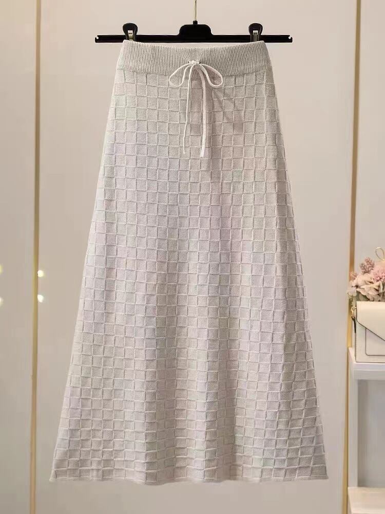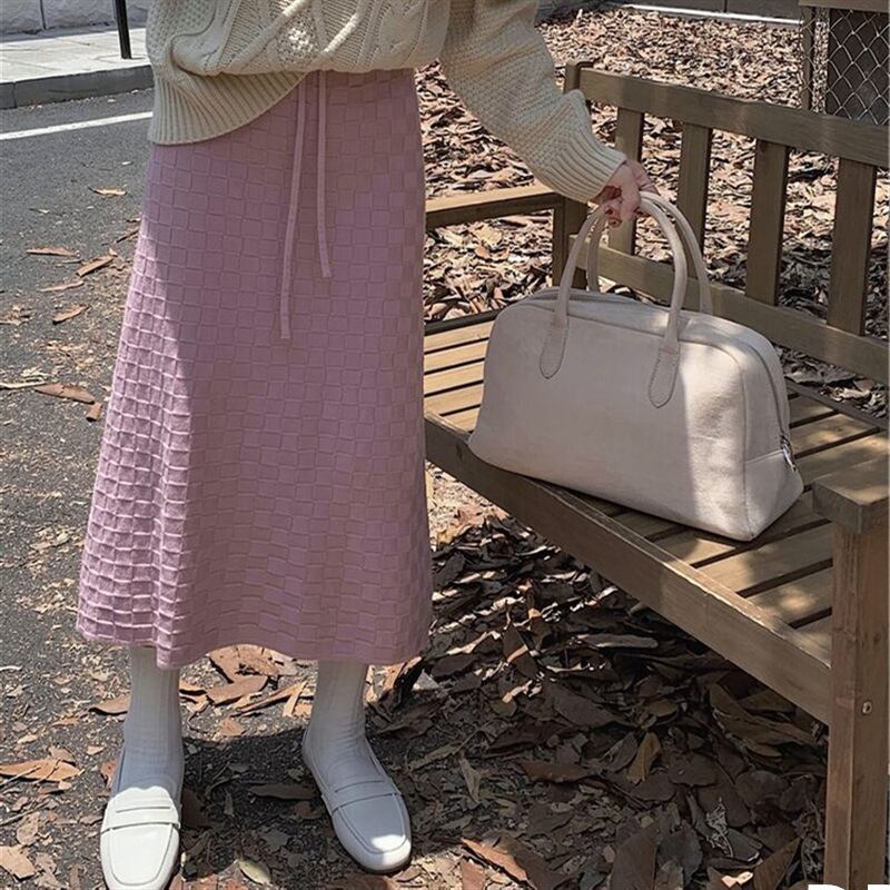 【送料無料】5色 ニットスカート ハイウエスト Aラインスカート ロング丈 かわいい 大人可愛い きれいめ 大人 上品 おしゃれ お洒落 かっこいい 大人女子 こなれ感 個性的 エレガント キュート ラブリー 主役級 存在感 チェッカー柄 レディース 柄 10代 20代 30代 OL 通勤 学生 通学 デート お出かけ 女子会 休日 着回し 普段使い 韓国 韓国系 オルチャン ファッション コーデ スタイル モテ トレンド インスタ映え ワンサイズ ブラック ピンク イエロー ベージュ db4245