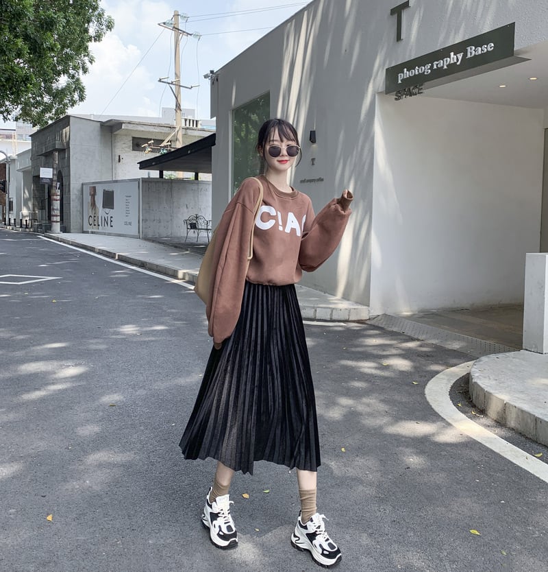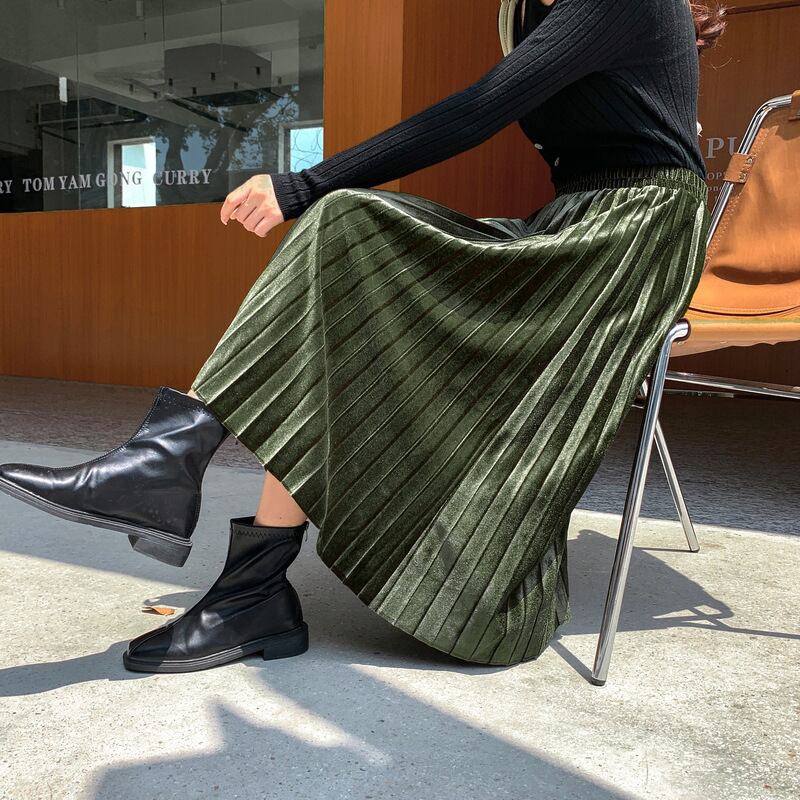 上品な光沢を放つベロア素材プリーツスカートです^^