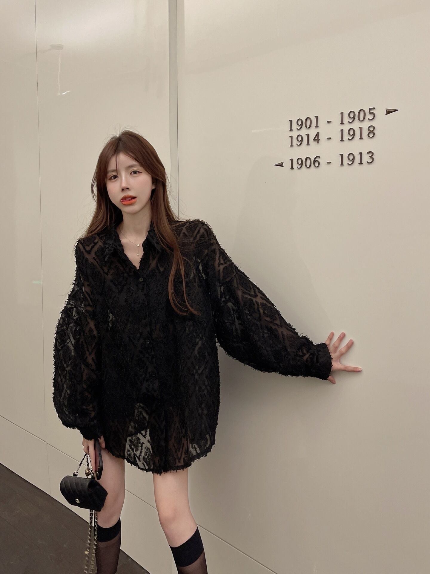 【送料無料】2色 長袖ブラウス シャツ ロング 透け感 重ね着 個性的 デザイン トップス ゆったり ルーズ レトロ 着回し クール きれいめ シック キュート プリティ モテる 着痩せ レディース ワンサイズ フリーサイズ 春 秋 ホワイト ブラック 黒 白 おしゃれ デート 大人可愛い お出かけ 存在感 こなれ感 抜け感 普段使い デイリー使い 休日 主役級 インスタ映え 韓国ファッション 海外トレンド 大人気 高見え 流行 10代 20代 30代 40代 プチプラ db4396