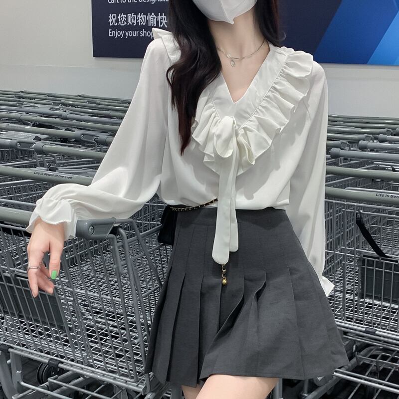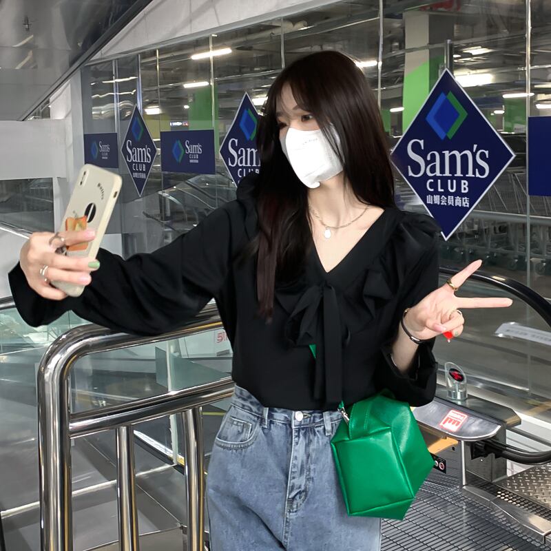 【送料無料】2色 長袖ブラウス シャツ リボン フリル 個性的 デザイン トップス ゆったり ルーズ レトロ 着回し クール きれいめ シック キュート プリティ モテる 着痩せ レディース ワンサイズ フリーサイズ 春 秋 ブラック ホワイト 黒 白 おしゃれ デート 大人可愛い お出かけ 存在感 こなれ感 抜け感 普段使い デイリー使い 休日 主役級 インスタ映え 韓国ファッション 海外トレンド 大人気 高見え 流行 10代 20代 30代 40代 プチプラ db4398