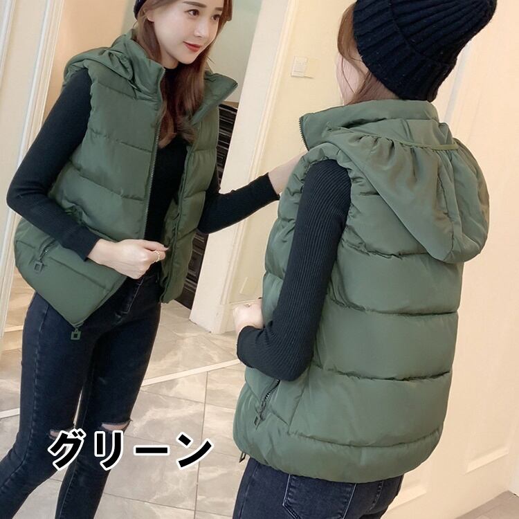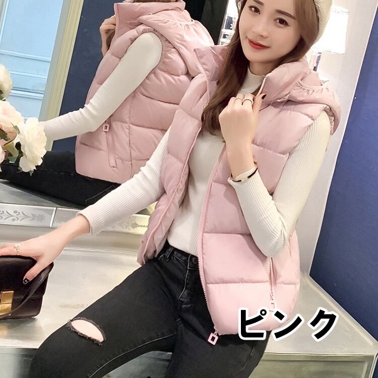 【送料無料】5色 ダウン ベスト もこもこアウター 中綿コート レディース ミドル丈 ブラック レッド ピンク ベージュ グリーン フード付き もこもこ 袖なし 大人可愛い かっこいい おしゃれ カジュアル 暖かい 防寒 こなれ感 M L XL 2XL 3XL 4XL インスタ映え 秋 冬 10代 20代 30代 40代 通勤 学生 女子会 休日 普段使い お散歩 公園デビュー ママ お揃い 双子 韓国 ファッション トレンド コーデ シンプル 主役級 抜け感 キュート ラフ ゆったり db4371