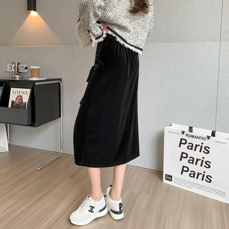 【送料無料】ペンシルスカート ナロースカート ドロスト ベロア生地 ベルベット スリット サイドスリット ミディ丈 ハイウエスト かわいい 大人可愛い カジュアル おしゃれ お洒落 かっこいい こなれ感 エレガント セクシー 主役級 存在感 ボトムス レディース 女性 女の子 無地 秋 10代 20代 学生 通学 デート お出かけ 女子会 休日 着回し 普段使い 韓国 韓国系 オルチャン ファッション コーデ スタイル 美脚 脚長 トレンド 流行 インスタ映え M L 黒 ブラック db4228