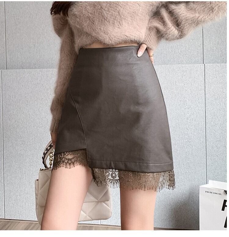【送料無料】2色 ミニスカート レザー 合皮 ミニ丈 レース ハイウエスト かわいい かっこいい カジュアル おしゃれ お洒落 かっこいい こなれ感 ラフ クール セクシー 主役級 存在感 ストリート ボトムス レディース 女性 女の子 PU 無地 秋 10代 20代 学生 通学 デート お出かけ 女子会 休日 着回し 普段使い 韓国 韓国系 オルチャン ファッション コーデ スタイル 美脚 脚長 トレンド 流行 インスタ映え S M L XL 黒 ブラック 茶色 ブラウン モノトーン db4238