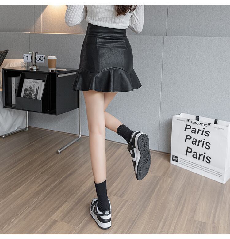 【送料無料】3色 ミニスカート レザー 合皮 ミニ丈 フリル ハイウエスト かわいい かっこいい カジュアル おしゃれ お洒落 かっこいい こなれ感 ラフ クール セクシー 主役級 存在感 ストリート ボトムス レディース 女性 女の子 PU 無地 秋 10代 20代 学生 通学 デート お出かけ 女子会 休日 着回し 普段使い 韓国 韓国系 オルチャン ファッション コーデ スタイル 美脚 脚長 トレンド 流行 インスタ映え S M L XL 黒 ブラック 茶色 ブラウン ベージュ db4239