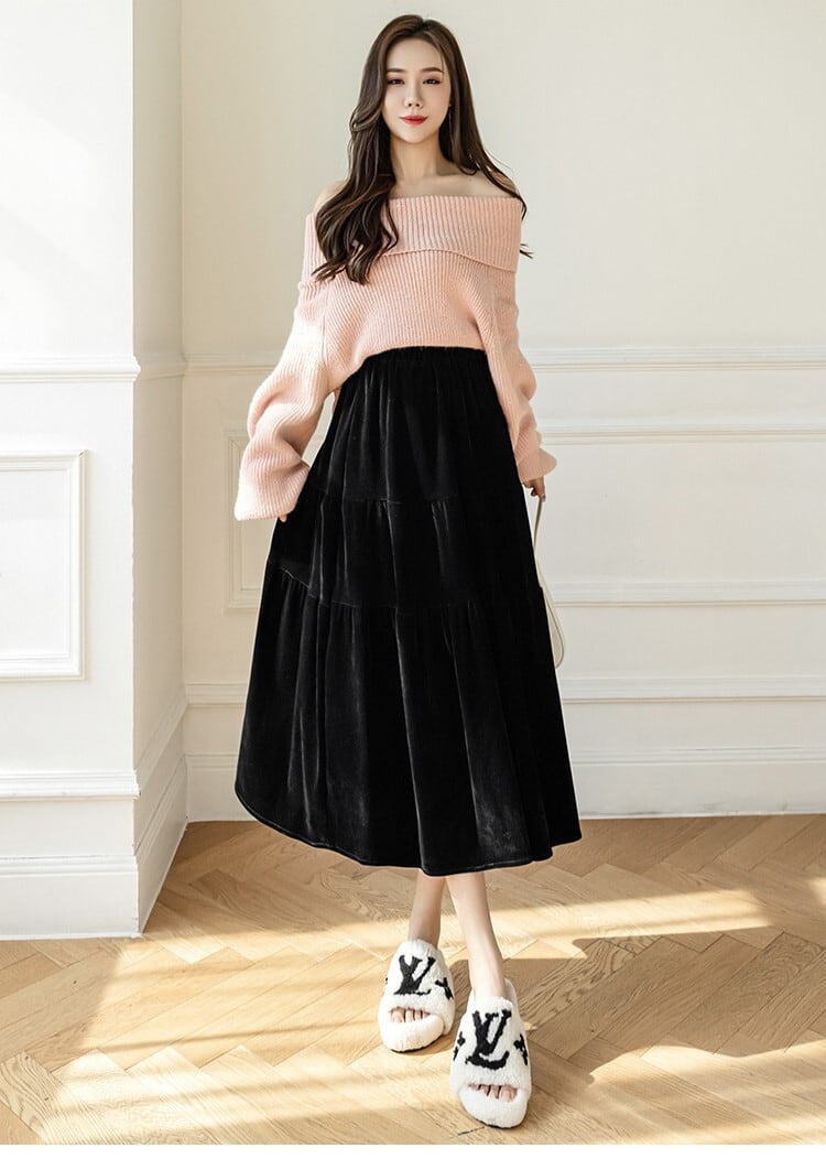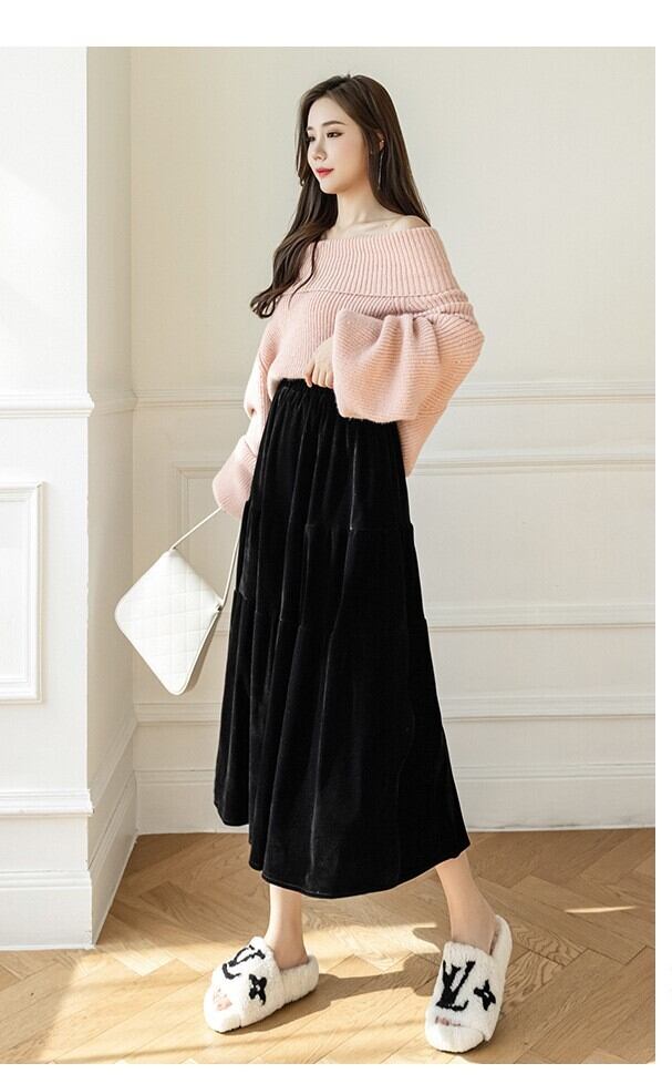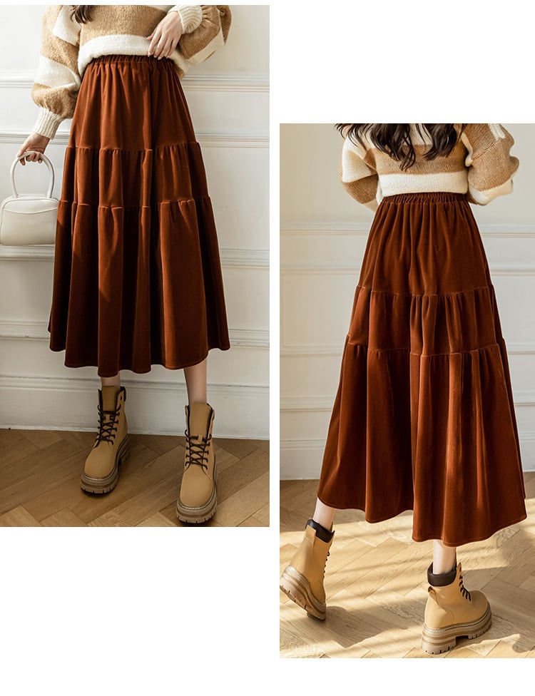 【送料無料】3色 ロングスカート ベロアスカート フレア Aライン ティアード ハイウエスト レトロ かわいい 大人可愛い カジュアル おしゃれ お洒落 かっこいい こなれ感 エレガント セクシー 主役級 存在感 ボトムス レディース 女性 女の子 無地 秋 冬 10代 20代 30代 学生 通学 デート お出かけ 女子会 休日 着回し 普段使い 韓国 韓国系 オルチャン ファッション コーデ スタイル 美脚 脚長 トレンド インスタ映え S M L XL 黒 ブラック ブラウン キャメル db4242