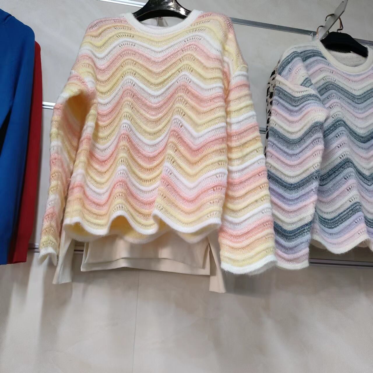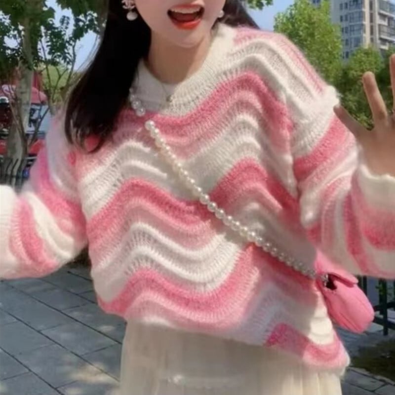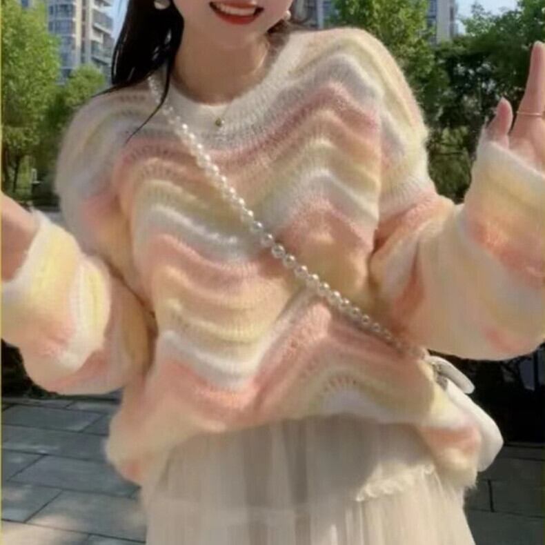 【送料無料】3色 長袖ニット セーター ストライプ グラデーション トップス プルオーバー 長袖 個性的 甘め かわいい 大人可愛い きれいめ おしゃれ お洒落 キュート ラブリー ガーリー 主役級 存在感 レディース 柄 秋 冬 10代 20代 女性用 女の子 学生 通学 デート お出かけ 女子会 休日 着回し 普段使い 重ね着 韓国 韓国系 オルチャン ファッション コーデ スタイル インスタ映え トレンド 流行 オーバーサイズ ワンサイズ イエロー パープル ピンク ゆったり ゆる db4251