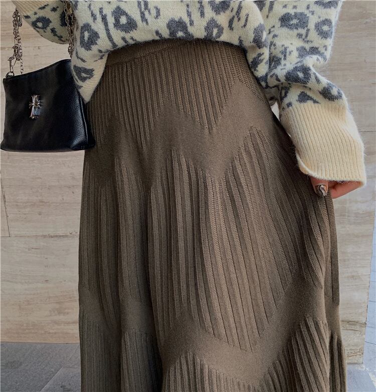 【送料無料】3色 ニットスカート アンブレラスカート ハイウエスト Aラインスカート ロング丈 かわいい 大人可愛い きれいめ 大人 上品 おしゃれ お洒落 かっこいい 大人女子 こなれ感 個性的 エレガント キュート ラブリー 主役級 存在感 レディース 柄 10代 20代 30代 OL 通勤 学生 通学 デート お出かけ 女子会 休日 着回し 普段使い 韓国 韓国系 オルチャン ファッション コーデ スタイル モテ トレンド インスタ映え ワンサイズ ブラック ベージュ ブラウン db4246