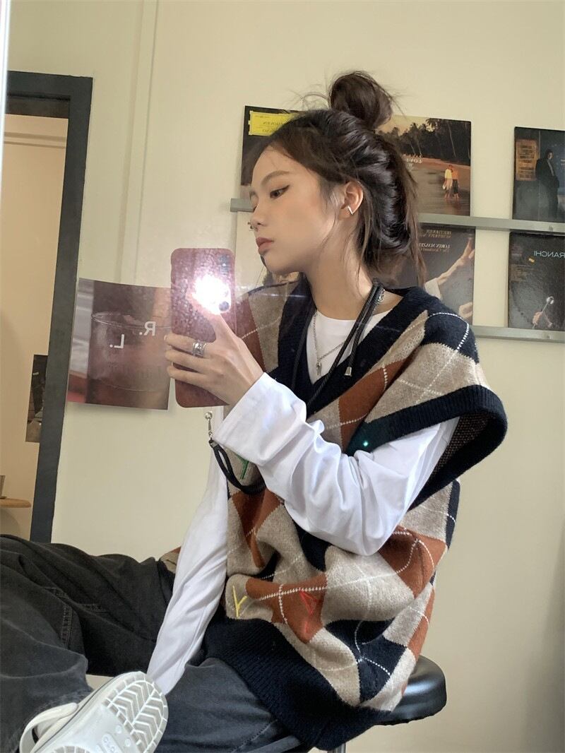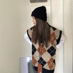 【送料無料】ニットベスト アーガイル Vネック 重ね着 個性的 デザイン トップス ゆったり ルーズ レトロ 着回し クール きれいめ シック キュート プリティ モテる 着痩せ レディース ワンサイズ フリーサイズ 春 秋 スプリング オータム おしゃれ デート 大人可愛い お出かけ 存在感 こなれ感 抜け感 普段使い デイリー使い 休日 主役級 インスタ映え 韓国ファッション 海外トレンド 大人気 高見え 流行 10代 20代 30代 40代 プチプラ db4420
