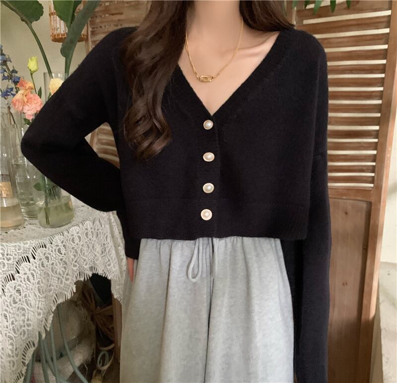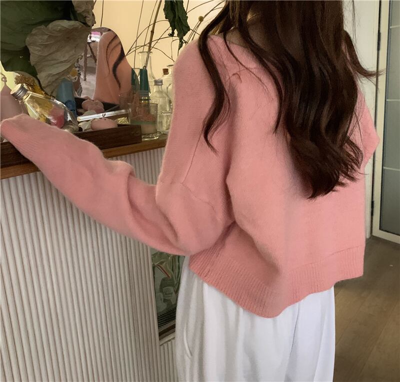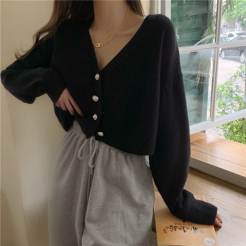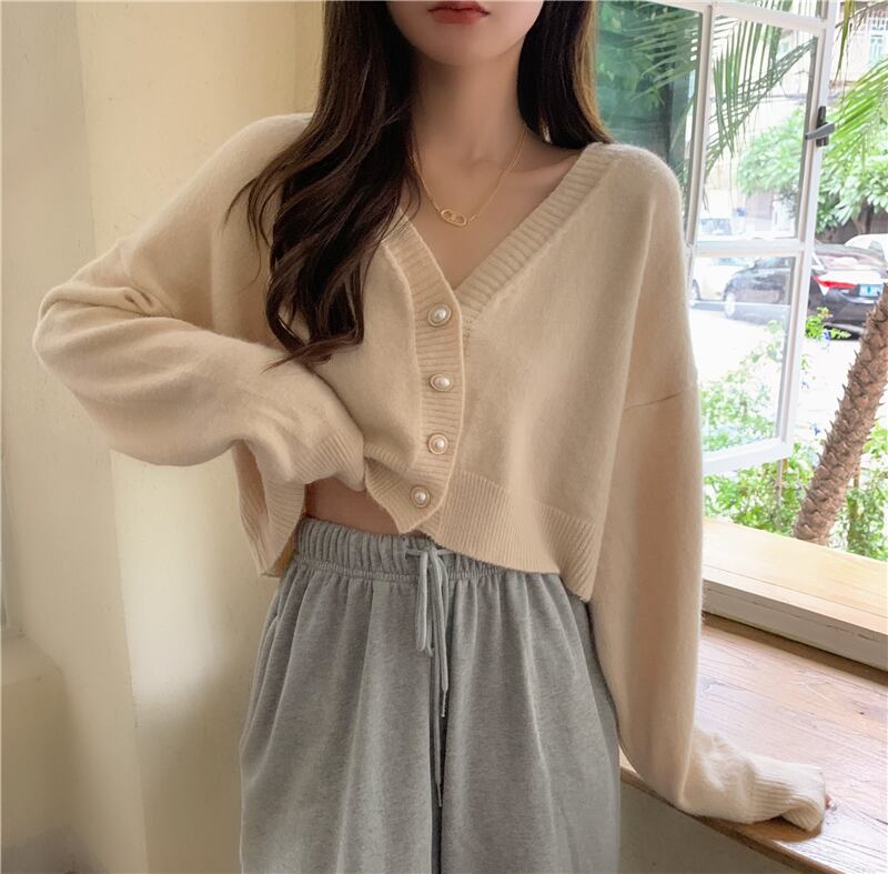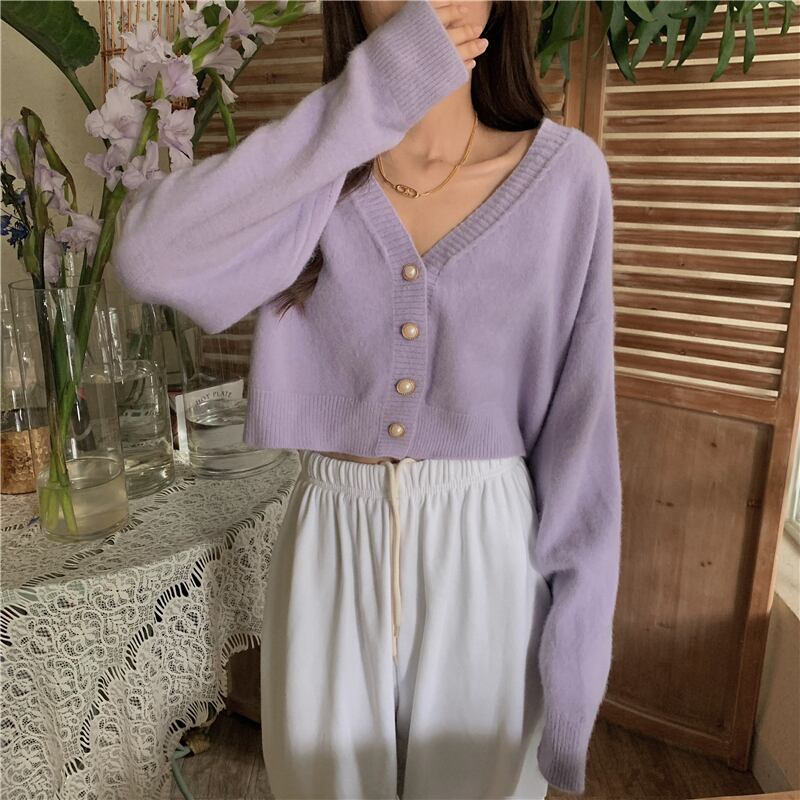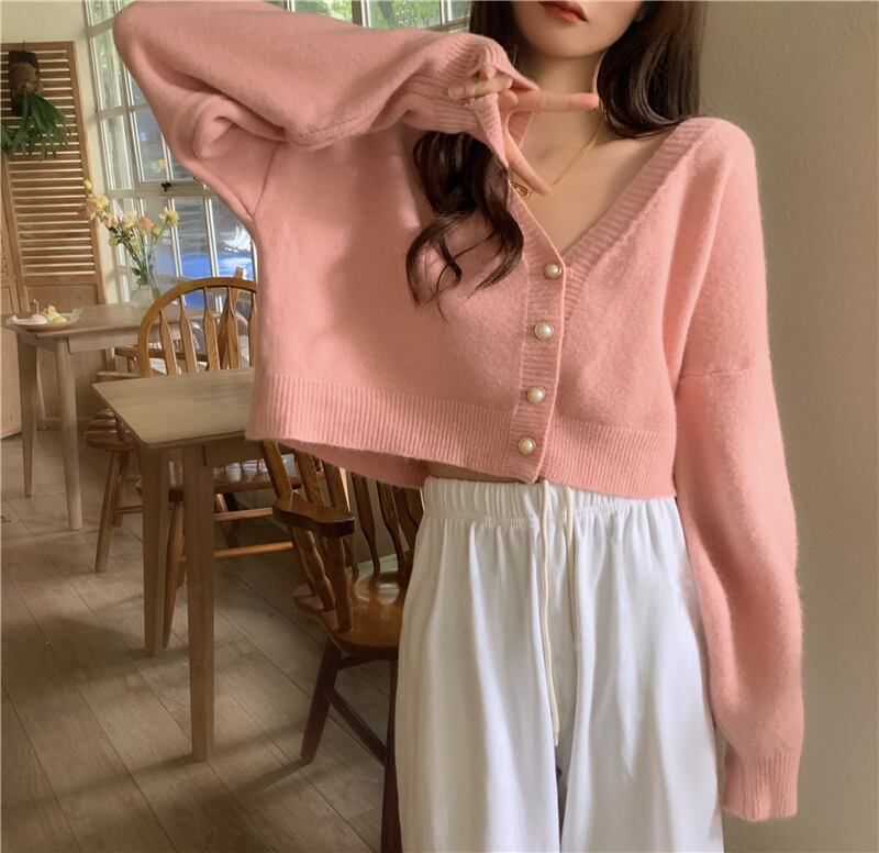 【送料無料】6色 長袖ニット カーディガン セーター ショート丈 パールボタン トップス 長袖 シンプル かわいい 大人可愛い きれいめ おしゃれ お洒落 カジュアル キュート ラブリー 主役級 存在感 レディース 無地 秋 冬 10代 20代 30代 女性用 女の子 学生 通学 デート お出かけ 女子会 休日 着回し 普段使い 重ね着 韓国 韓国系 オルチャン ファッション コーデ スタイル インスタ映え トレンド 流行 ワンサイズ ベージュ グレー パープル ブラック ピンク グリーン db4483