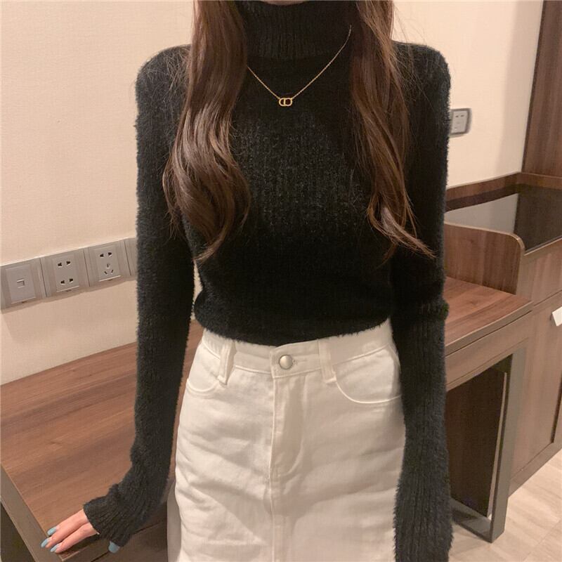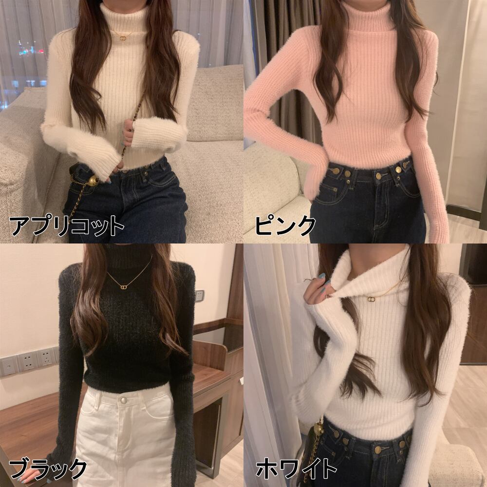 【送料無料】4色 長袖ニット セーター ハイネック トップス スリム 細身 タイト 長袖 かわいい 大人可愛い きれいめ シンプル おしゃれ お洒落 キュート ラブリー フェミニン 主役級 存在感 レディース 柄 秋 冬 10代 20代 女性用 女の子 学生 通学 デート お出かけ 女子会 休日 着回し 普段使い 重ね着 韓国 韓国系 オルチャン ファッション コーデ スタイル インスタ映え トレンド 流行 プチプラ ワンサイズ フリーサイズ ブラック 黒 ピンク ホワイト 白 アプリコット db4491