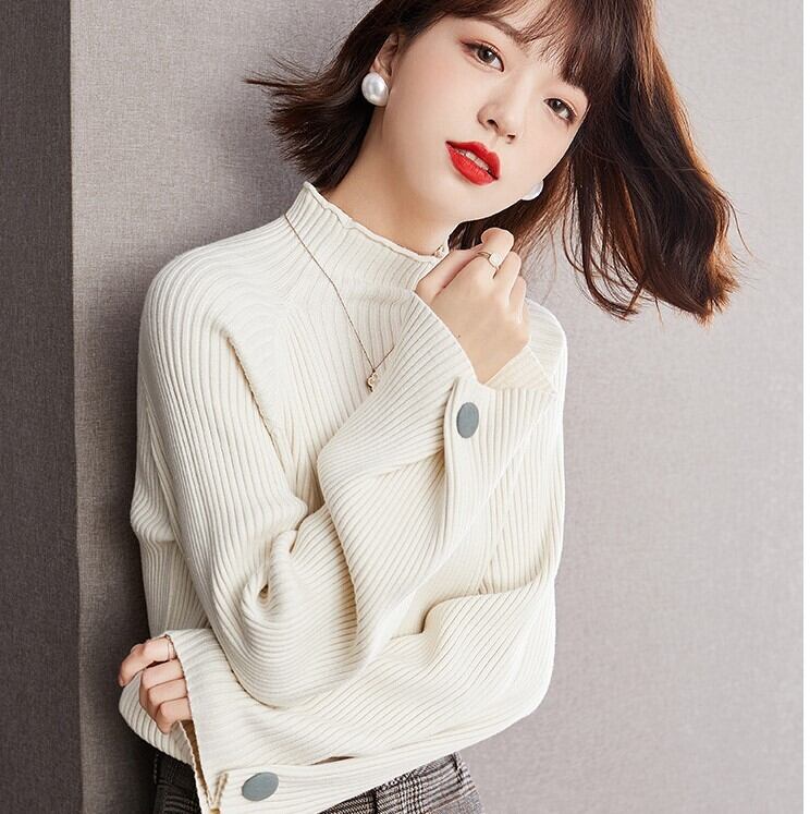 【送料無料】長袖ニット セーター ハイネック フレアスリーブ リブニット トップス ルーズ プルオーバー 長袖 かわいい 大人可愛い きれいめ シンプル おしゃれ お洒落 キュート ラブリー フェミニン 個性的 主役級 存在感 レディース 柄 秋 冬 10代 20代 30代 女性用 女の子 学生 通学 デート お出かけ 女子会 休日 着回し 普段使い 重ね着 韓国 韓国系 オルチャン ファッション コーデ スタイル インスタ映え トレンド 流行 プチプラ S M L XL アプリコット db4492