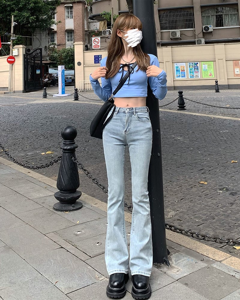 【送料無料】3色 ジーンズ Gパン デニムパンツ フレア スリム タイト 細身 ハイウエスト かわいい 大人可愛い きれいめ シンプル カジュアル おしゃれ お洒落 レトロ 大人女子 ラフ メンズライク 主役級 存在感 抜け感 ストリート レディース 女の子 ボトムス 10代 20代 30代 学生 通学 デート お出かけ 女子会 休日 着回し 普段使い 韓国 韓国系 オルチャン ファッション コーデ スタイル 美脚 脚長 トレンド 流行 S M L XL 黒 ブラック ブルー db4501