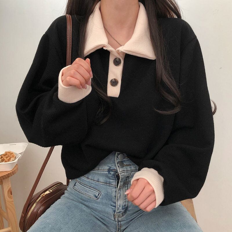 【送料無料】2色 長袖トップス ニット セーター 襟付き シンプル ゆったり ルーズ レトロ 着回し クール きれいめ シック キュート プリティ モテる 着痩せ レディース S M L XL 2XL 大きいサイズ 秋 冬 オータム ウインター ブラック ホワイト 黒 白 おしゃれ デート 大人可愛い お出かけ 存在感 こなれ感 抜け感 普段使い デイリー使い 休日 主役級 インスタ映え 韓国ファッション 海外トレンド 大人気 高見え 流行 10代 20代 30代 40代 プチプラ db4427
