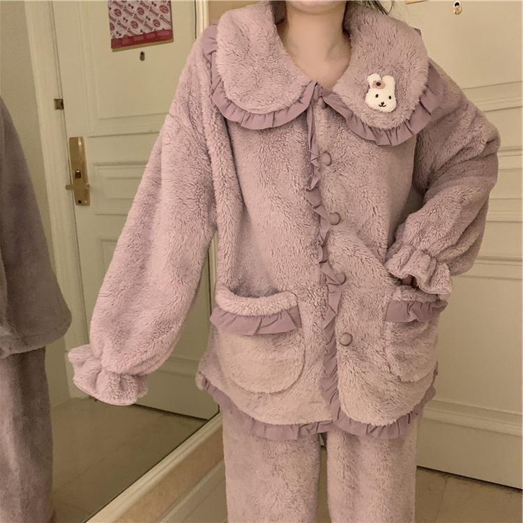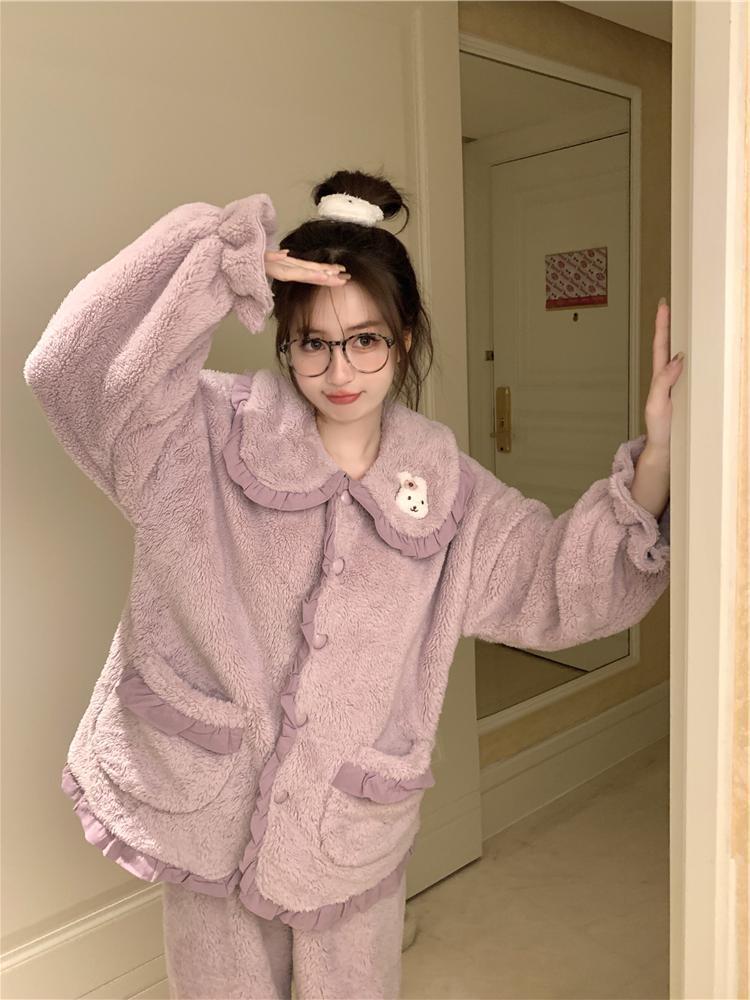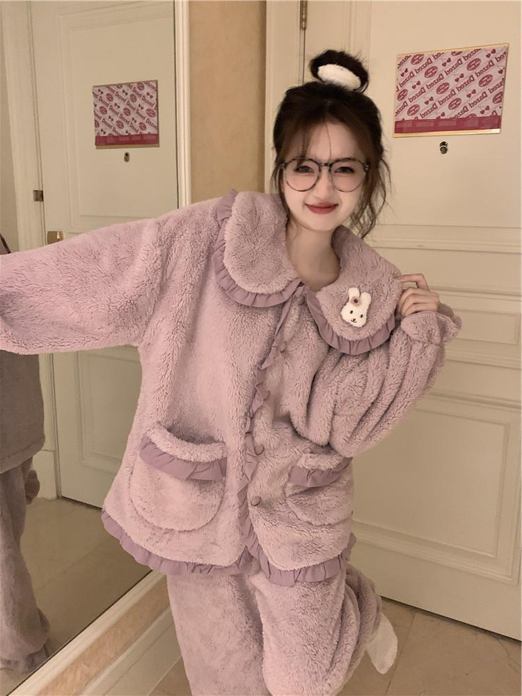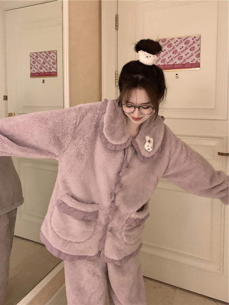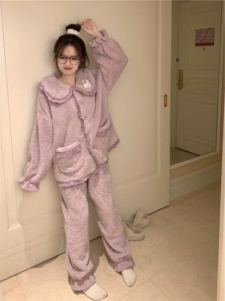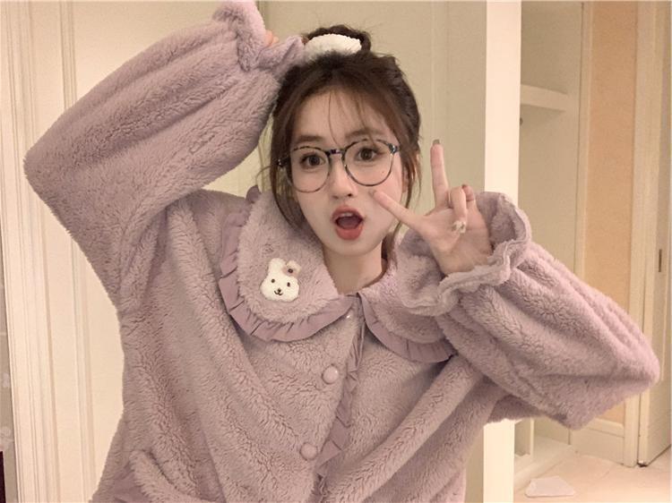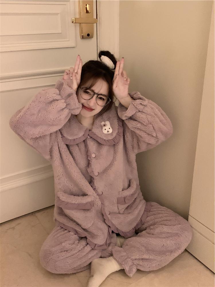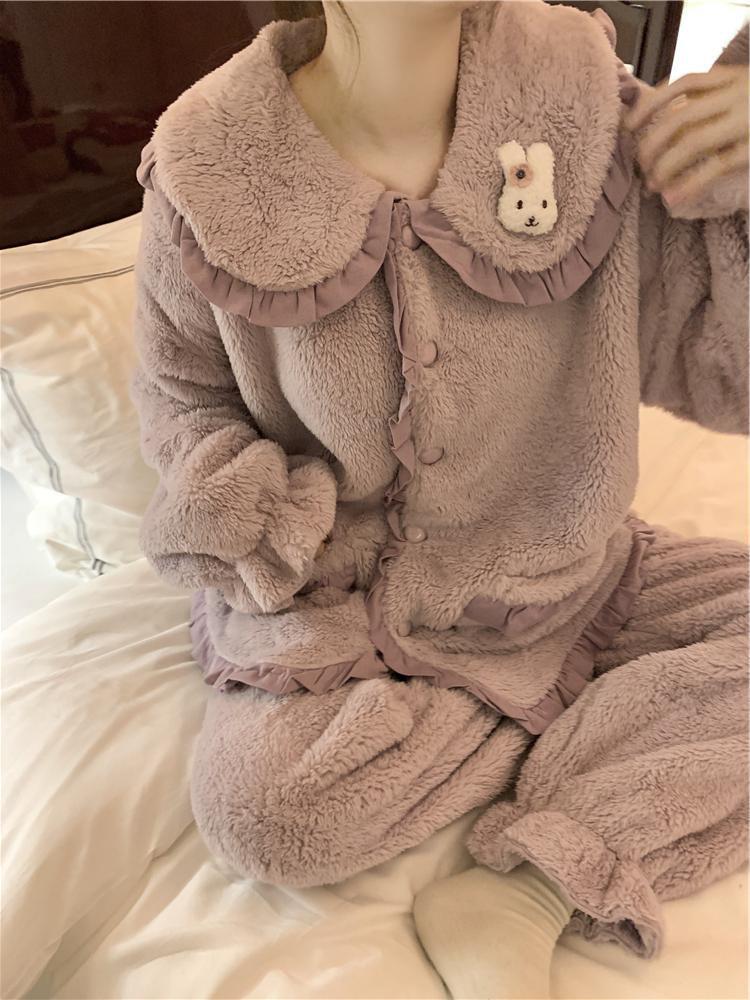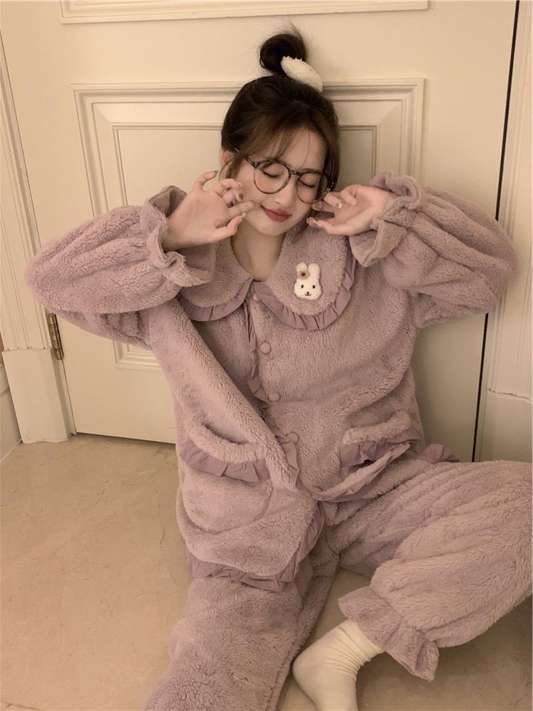 【送料無料】もこもこ ルームウェア パジャマ 着る毛布 部屋着 お家コーデ ふわふわ モコモコ 秋 冬 ナイトウェア 上下セット セットアップ 2点セット かわいい 大人可愛い ラブリー フェミニン レディース 女の子 前開き ポケット 襟付き フリル うさぎ 動物 長袖 長ズボン フリース ボア 無地 レディース 10代 20代 楽ちん オフ リラックス 休日 デート お泊まり 旅行 あったか 暖かい 韓国 ファッション ワンサイズ フリーサイズ 個性的 ゆったり ゆる プレゼント 韓国 db4558