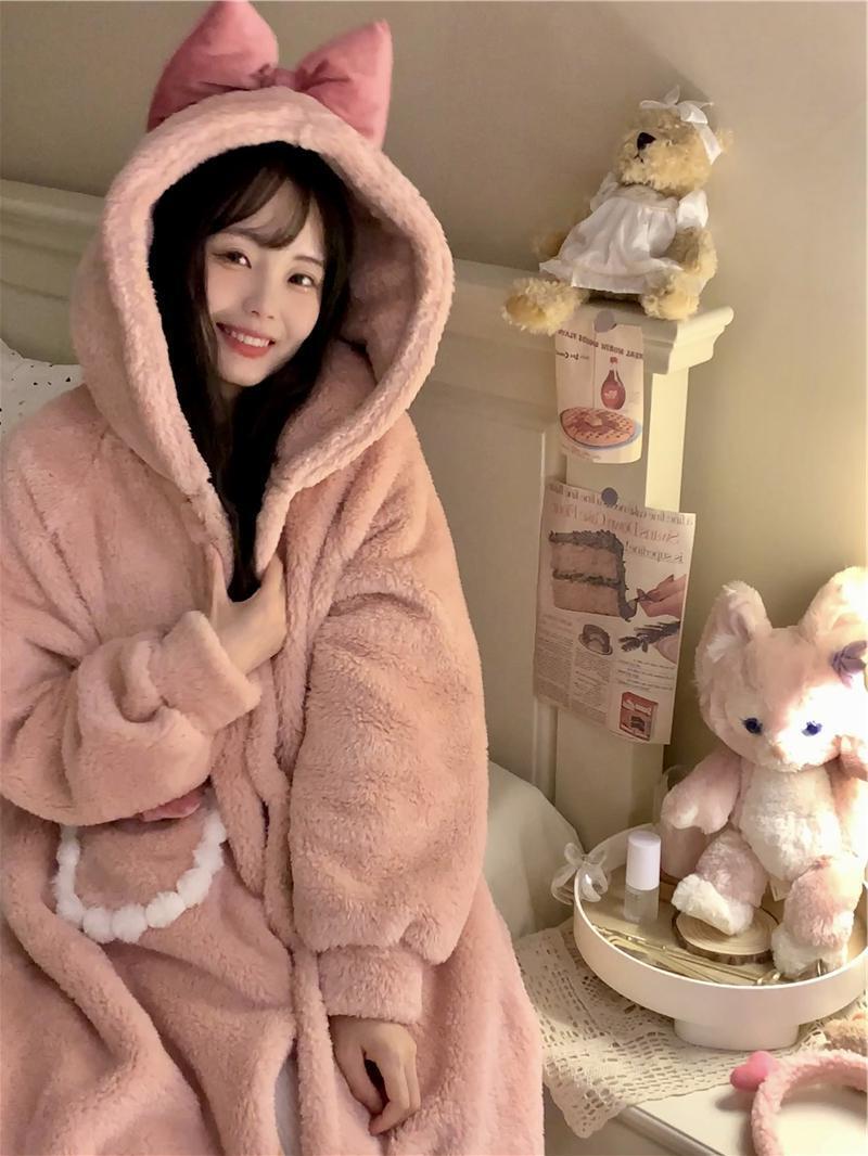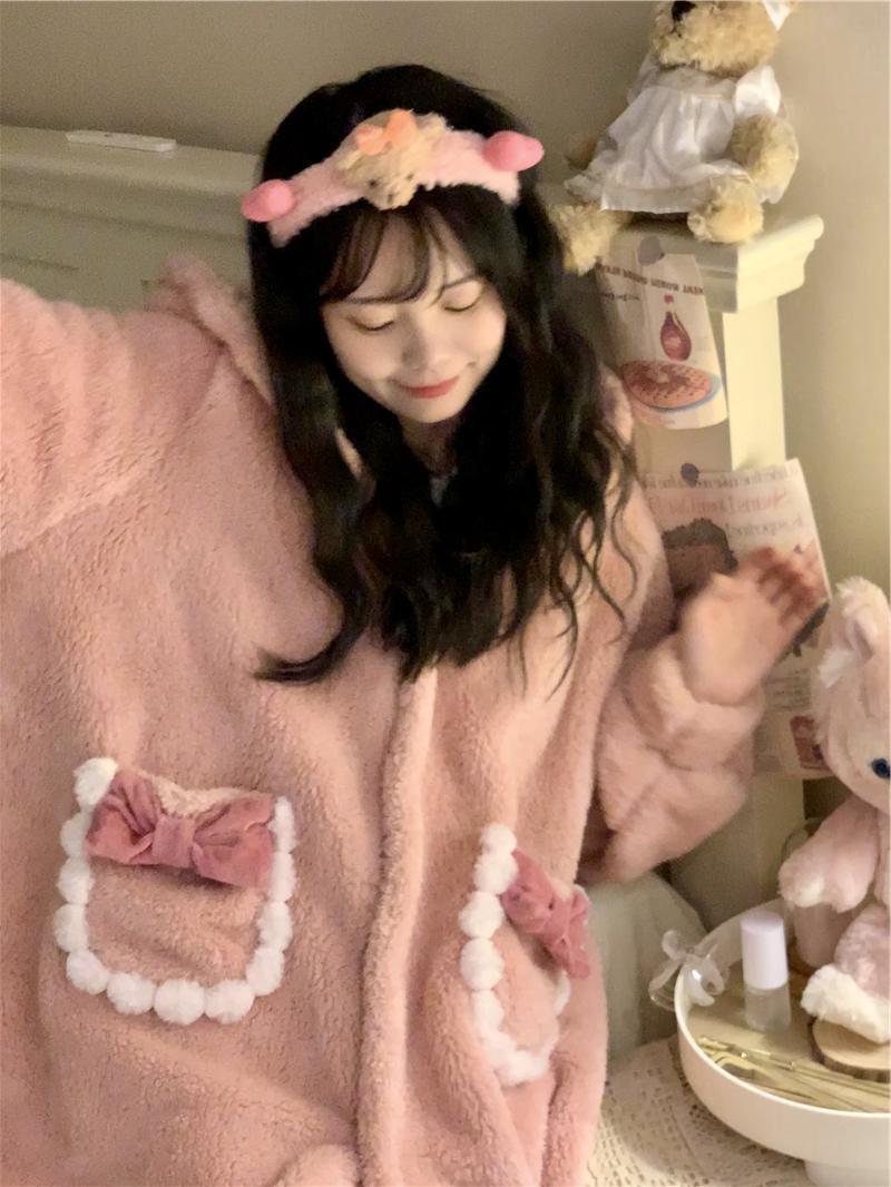 【送料無料】もこもこ ルームウェア パジャマ 着る毛布 部屋着 お家コーデ ふわふわ モコモコ 秋 冬 ナイトウェア ガウン かわいい キュート 大人可愛い ラブリー ガーリー 甘め レディース 女の子 前開き ポケット フード付き 着ぐるみ お家コーデ 長袖 リボン ボア 無地 レディース 10代 20代 楽ちん オフ リラックス 休日 デート お泊まり 旅行 あったか 暖かい 韓国 オルチャン ファッション ワンサイズ フリーサイズ 個性的 ゆったり ゆる プレゼント ピンク db4560