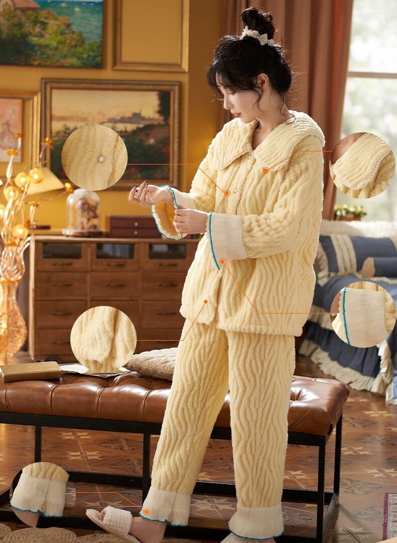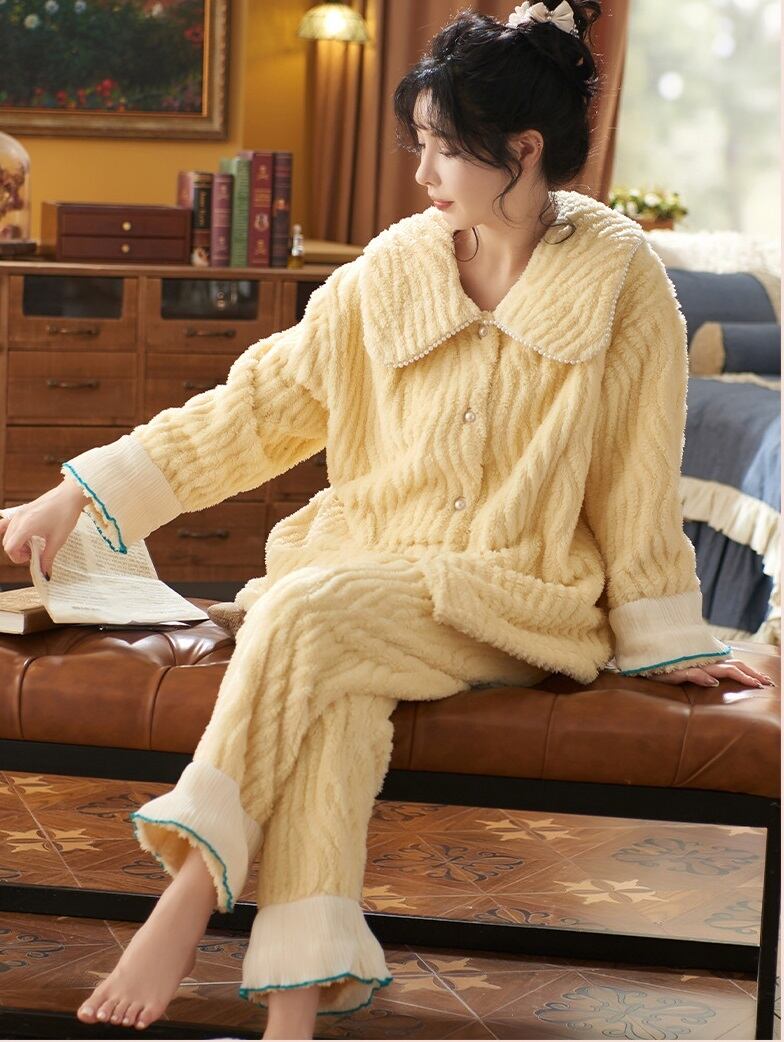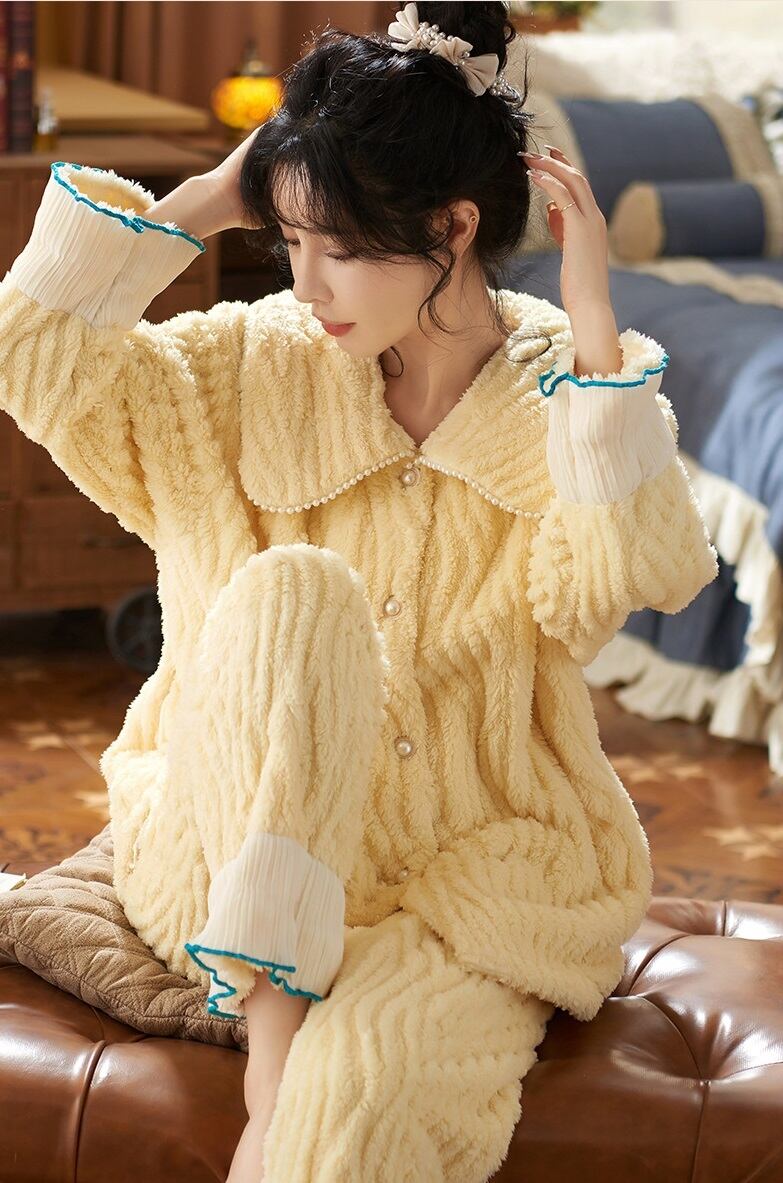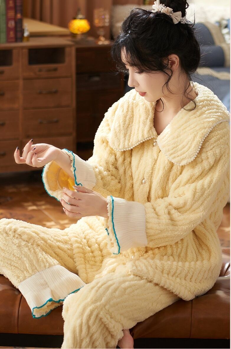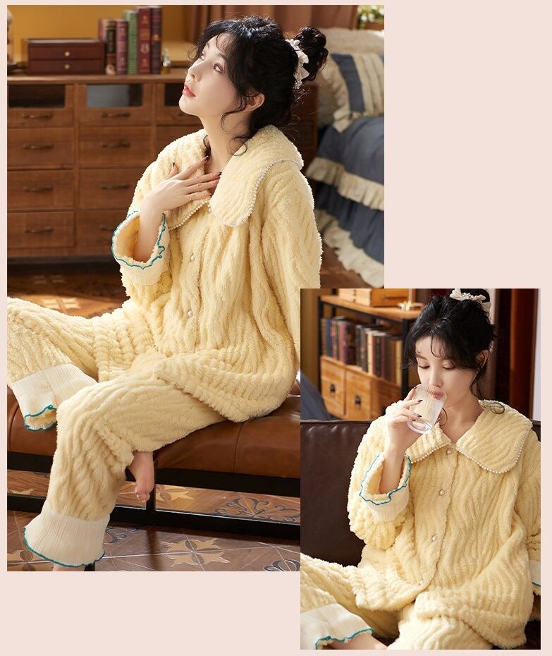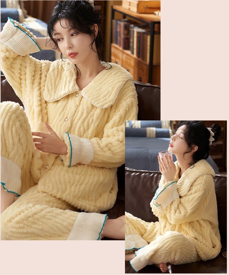 【送料無料】もこもこ ルームウェア ツーピース 上下セット 2点セット セットアップ 無地 シンプル ふわふわ 個性的 暖かい 可愛い ラブリー キュート 秋冬 着る毛布 レディース 部屋着 ラフ ナイトウエア パジャマ 寝間着 お家コーデ イエロー 黄色 M L XL 2XL 大きいサイズ インスタ映え 普段使い デイリー使い お泊り 女子会 お揃い 双子 旅行 パジャマパーティ 主役級 トレンド 抜け感 オシャレ ゆったり らくちん ルーズ ゆる プチプラ プレゼント 10代 20代 db4539