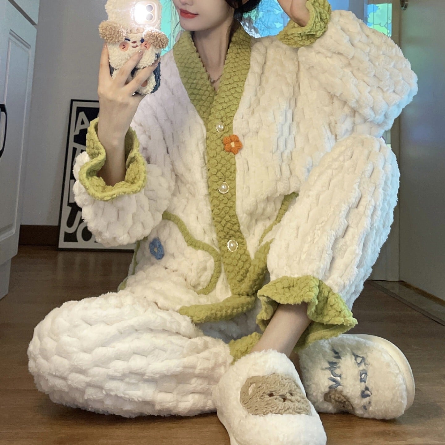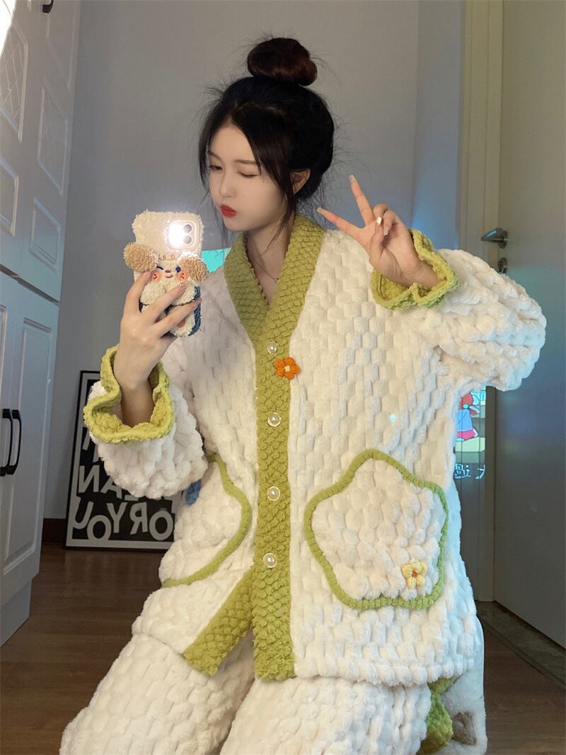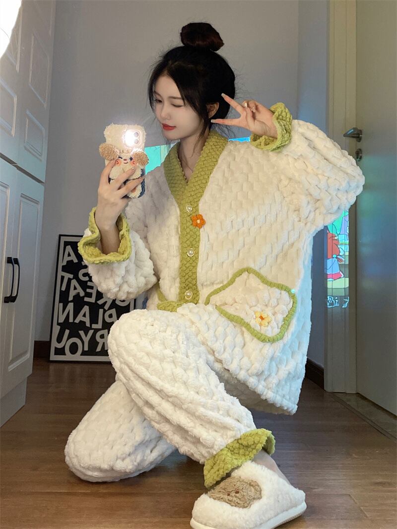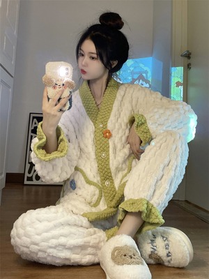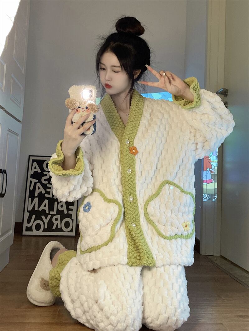 【送料無料】もこもこ ルームウェア パジャマ 着る毛布 部屋着 お家コーデ ふわふわ モコモコ 秋 冬 ナイトウェア 上下セット セットアップ 2点セット かわいい 大人可愛い キュート ラブリー フェミニン レディース 女の子 前開き 花 フラワー ポケット 長袖 長ズボン フリース ボア レディース 10代 20代 オフ リラックス 休日 デート お泊まり 旅行 あったか 暖かい 韓国 オルチャン ファッション S M L 個性的 ゆったり ゆる プレゼント デイリー使い db4563