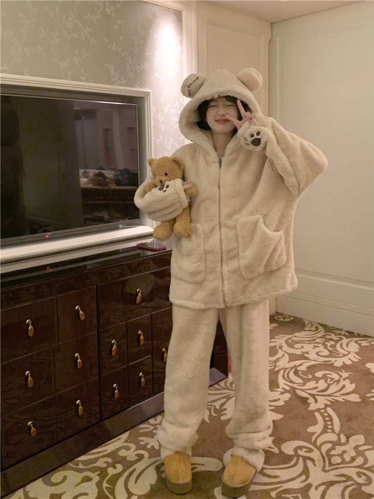 【送料無料】もこもこ ルームウェア パジャマ 着る毛布 部屋着 お家コーデ ふわふわ モコモコ 秋 冬 ナイトウェア 上下セット セットアップ 2点セット かわいい 大人可愛い ラブリー フェミニン レディース 女の子 前開き ポケット フード付き 耳つき 動物 長袖 長ズボン フリース ボア 無地 レディース 10代 20代 楽ちん オフ リラックス 休日 デート お泊まり 旅行 あったか 暖かい 韓国 ファッション ワンサイズ フリーサイズ 個性的 ゆったり ゆる プレゼント db4566