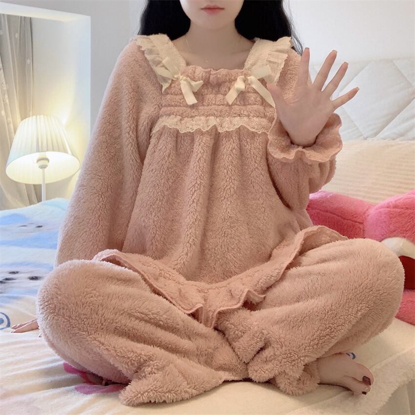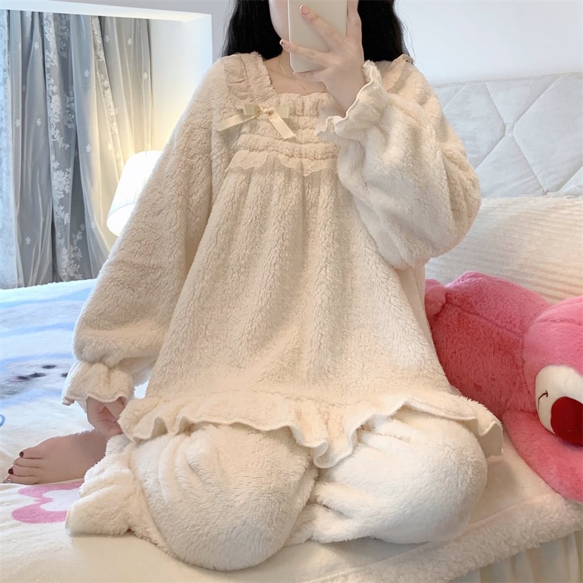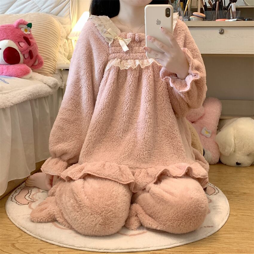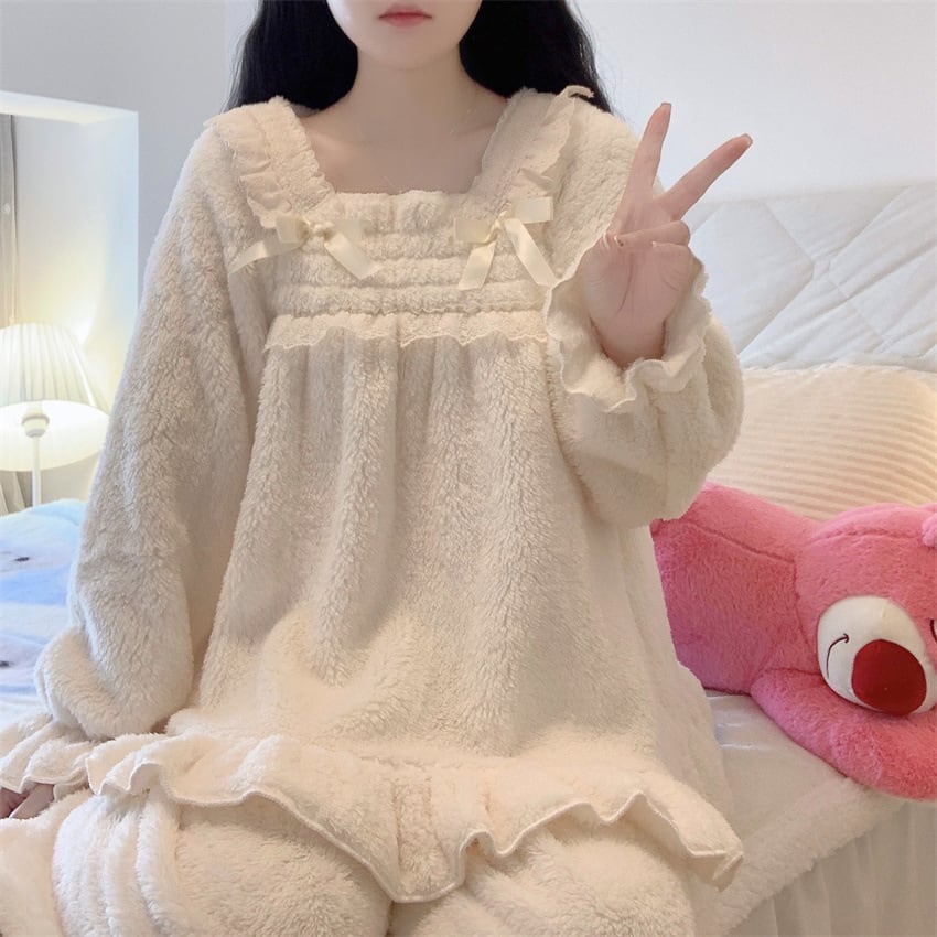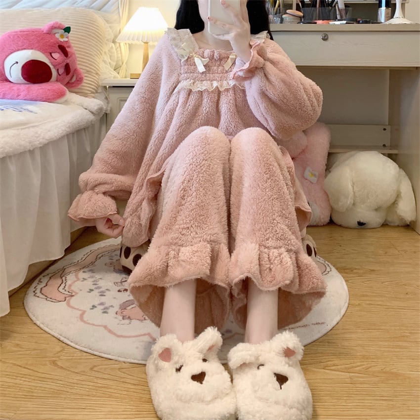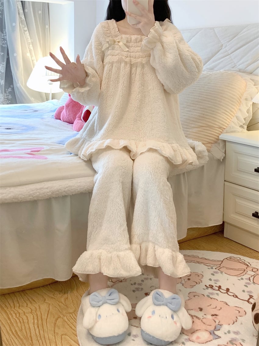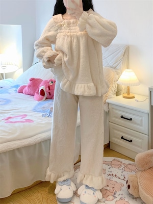 【送料無料】2色 もこもこ ルームウェア パジャマ 着る毛布 部屋着 お家コーデ ふわふわ モコモコ 秋 冬 ナイトウェア 上下セット セットアップ 2点セット かわいい 大人可愛い ラブリー レディース 女の子 前開き ポケット 襟付き フリル りぼん リボン 長袖 長ズボン フリース ボア 無地 レディース 10代 20代 楽ちん オフ リラックス 休日 デート お泊まり 旅行 あったか 暖かい 韓国 ファッション ワンサイズ フリーサイズ 個性的 ゆったり ゆる プレゼント 白 ピンク db4569