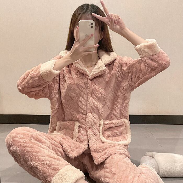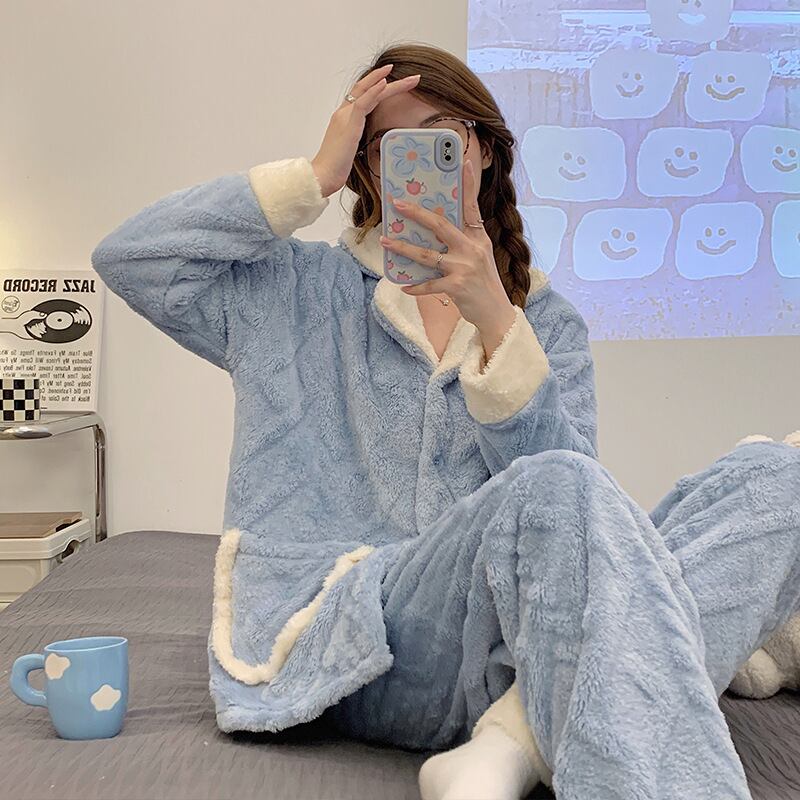 【送料無料】2色 もこもこ ルームウェア パジャマ 着る毛布 部屋着 お家コーデ ふわふわ モコモコ 秋 冬 ナイトウェア 上下セット セットアップ 2点セット かわいい 大人可愛い ラブリー フェミニン レディース 女の子 前開き ポケット 襟付き 長袖 長ズボン フリース ボア 無地 レディース 10代 20代 楽ちん オフ リラックス 休日 デート お泊まり 旅行 あったか 暖かい 韓国 ファッション M L XL 2XL 個性的 ゆったり ゆる プレゼント ブルー ピンク db4571